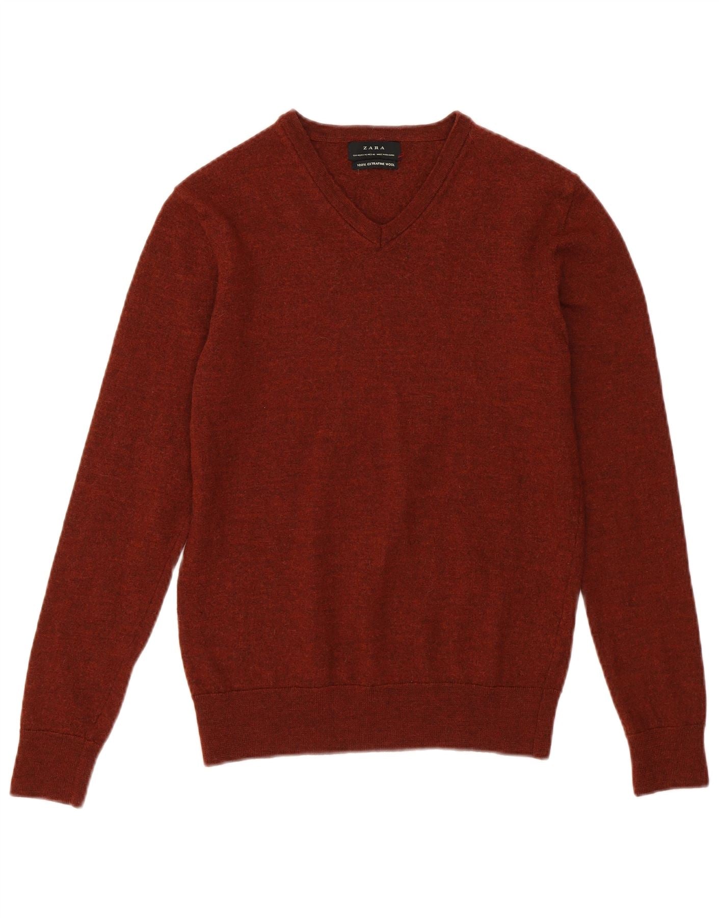 ZARA Womens Crop V-Neck Jumper Sweater UK 12 Medium Brown Wool