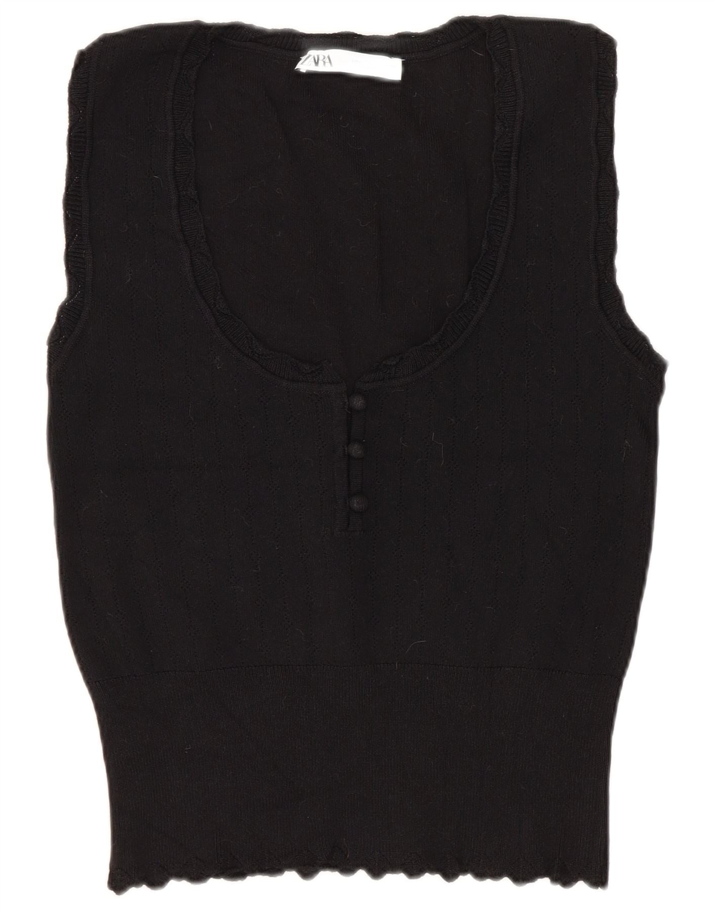 Zara Womens Crop Vest Tank Top UK 14 Large Black Viscose