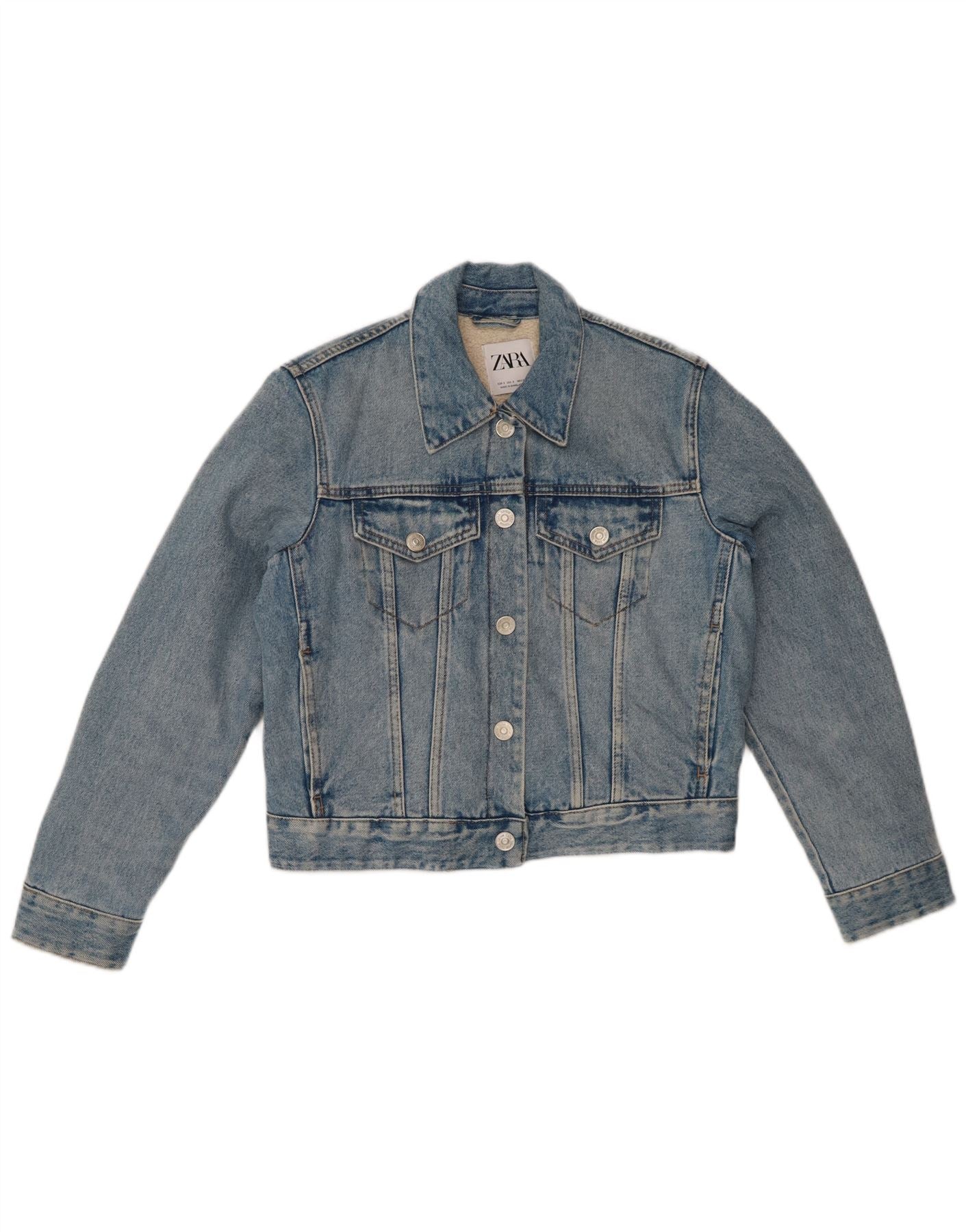 ZARA Womens Denim Crop Sherpa Jacket UK 10 Small Blue Cotton