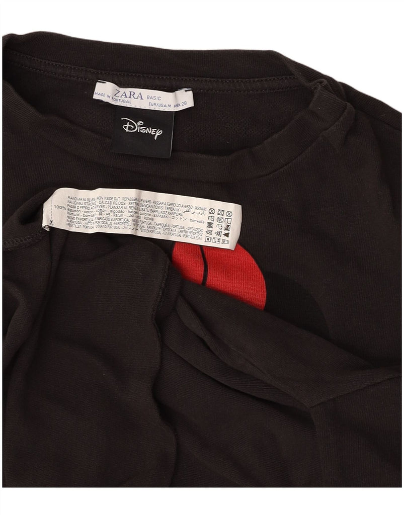 ZARA Womens Disney Crop Graphic T-Shirt Top UK 14 Medium Black Cotton