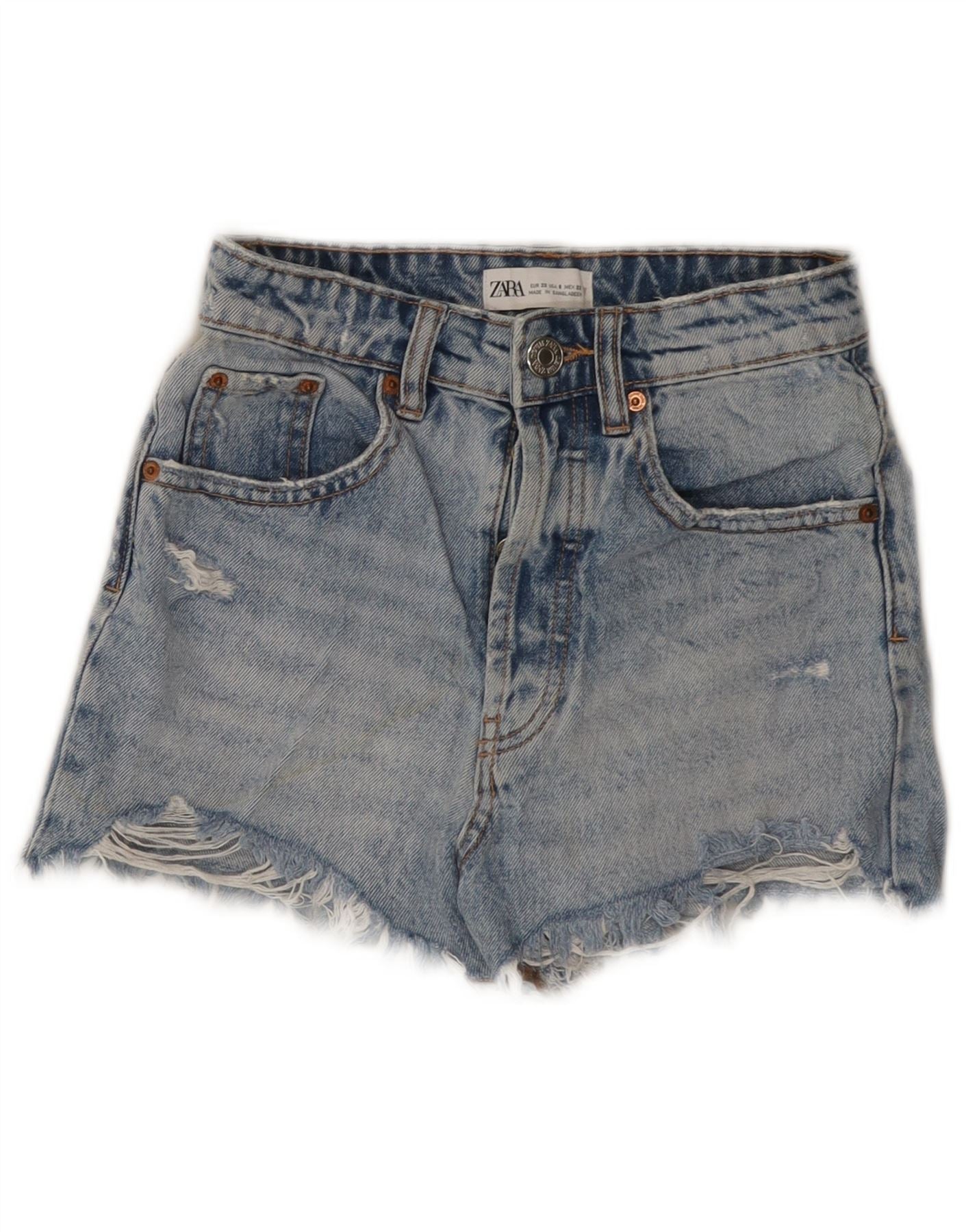 ZARA Womens Distressed Denim Shorts US 0 XS W22 Blue