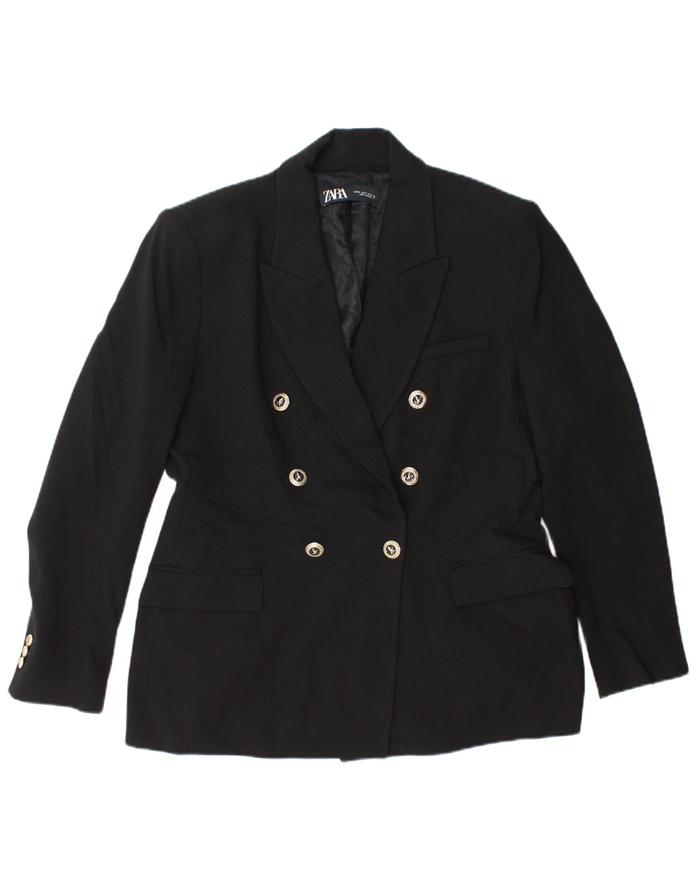 ZARA Womens Double Breasted Blazer Jacket UK 18 XL Black Polyester