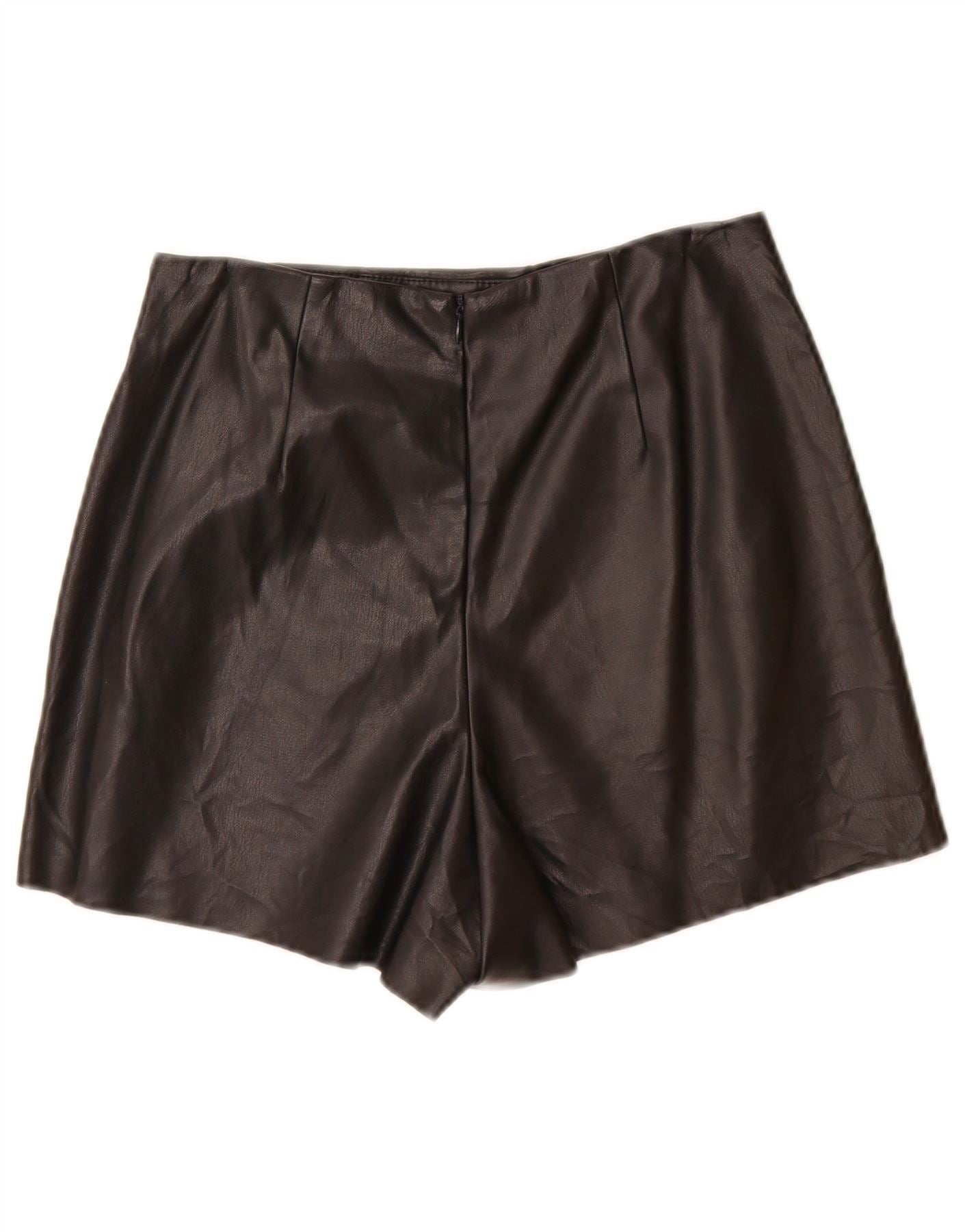 ZARA Womens Faux Leather Casual Shorts Small W26 Black Polyurethane