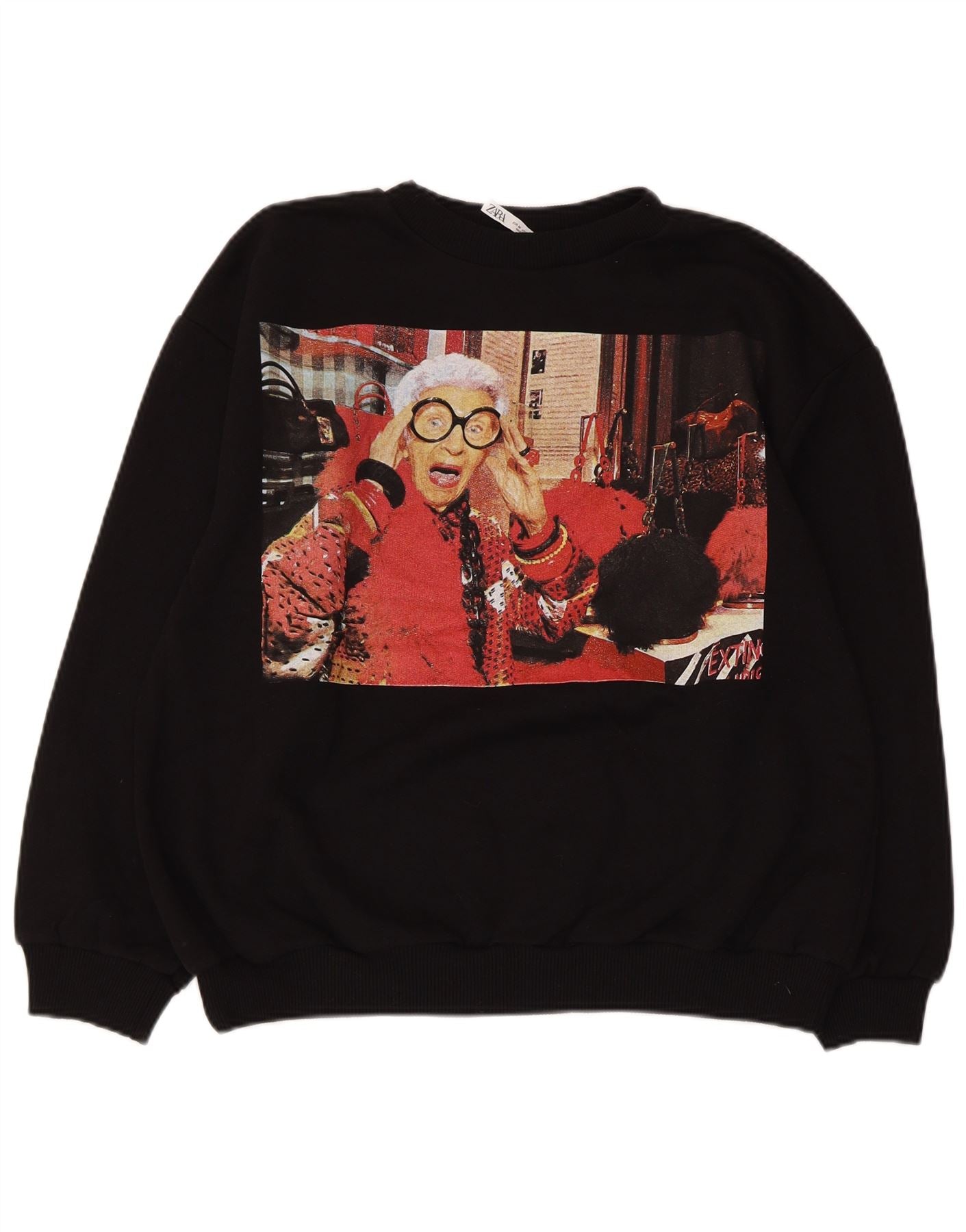 ZARA Womens Graphic Sweatshirt Jumper UK 14 Medium Black Cotton