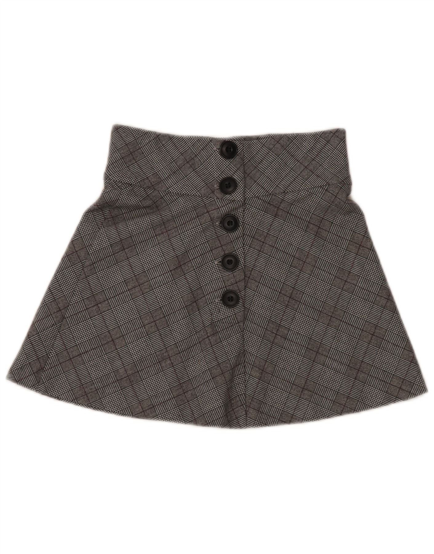 Zara Womens High Waist Mini Skirt XS W26 Grey Plaid