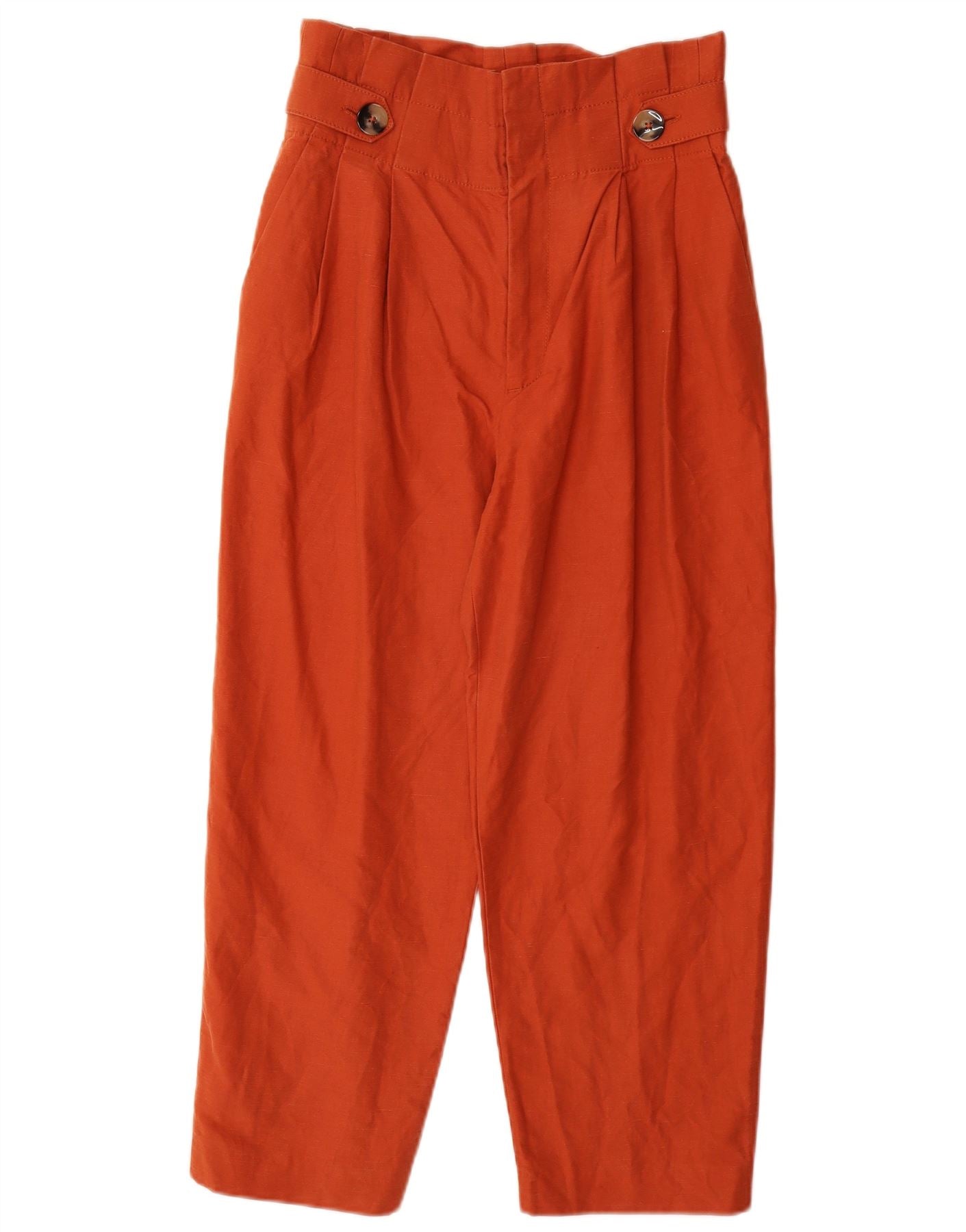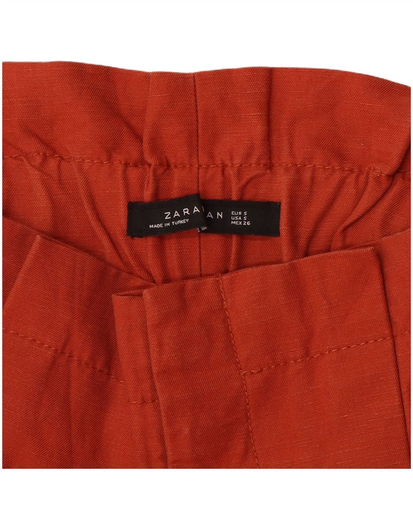 ZARA Womens High Waist Pegged Cropped Trousers Small W26 L24 Orange Linen