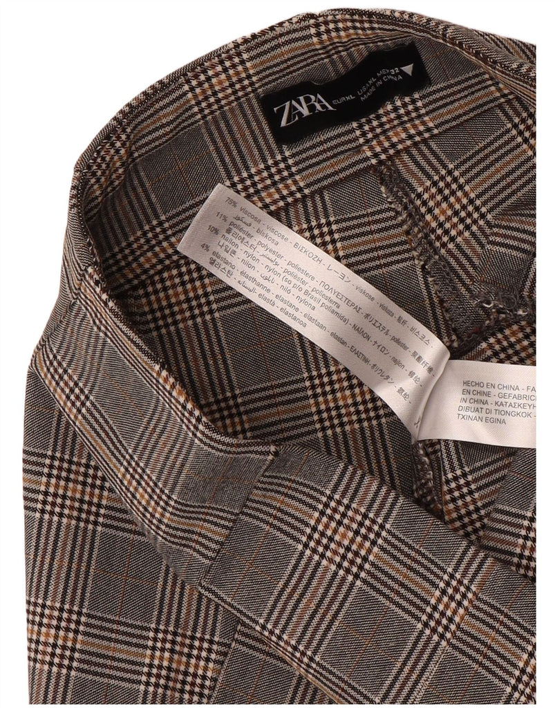 ZARA Womens High Waist Slim Casual Trousers XL W32 L29 Brown Check Viscose