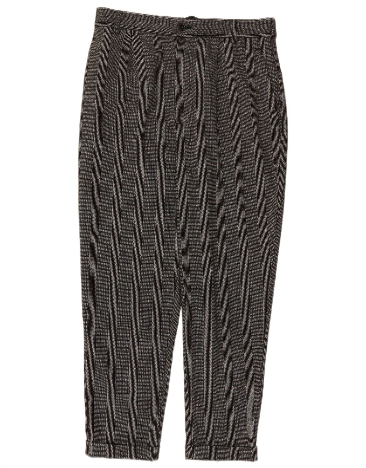 ZARA Womens High Waist Tapered Cropped Trousers Small W26 L24 Grey Striped