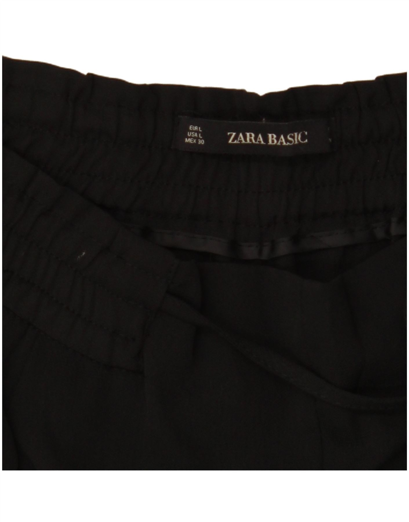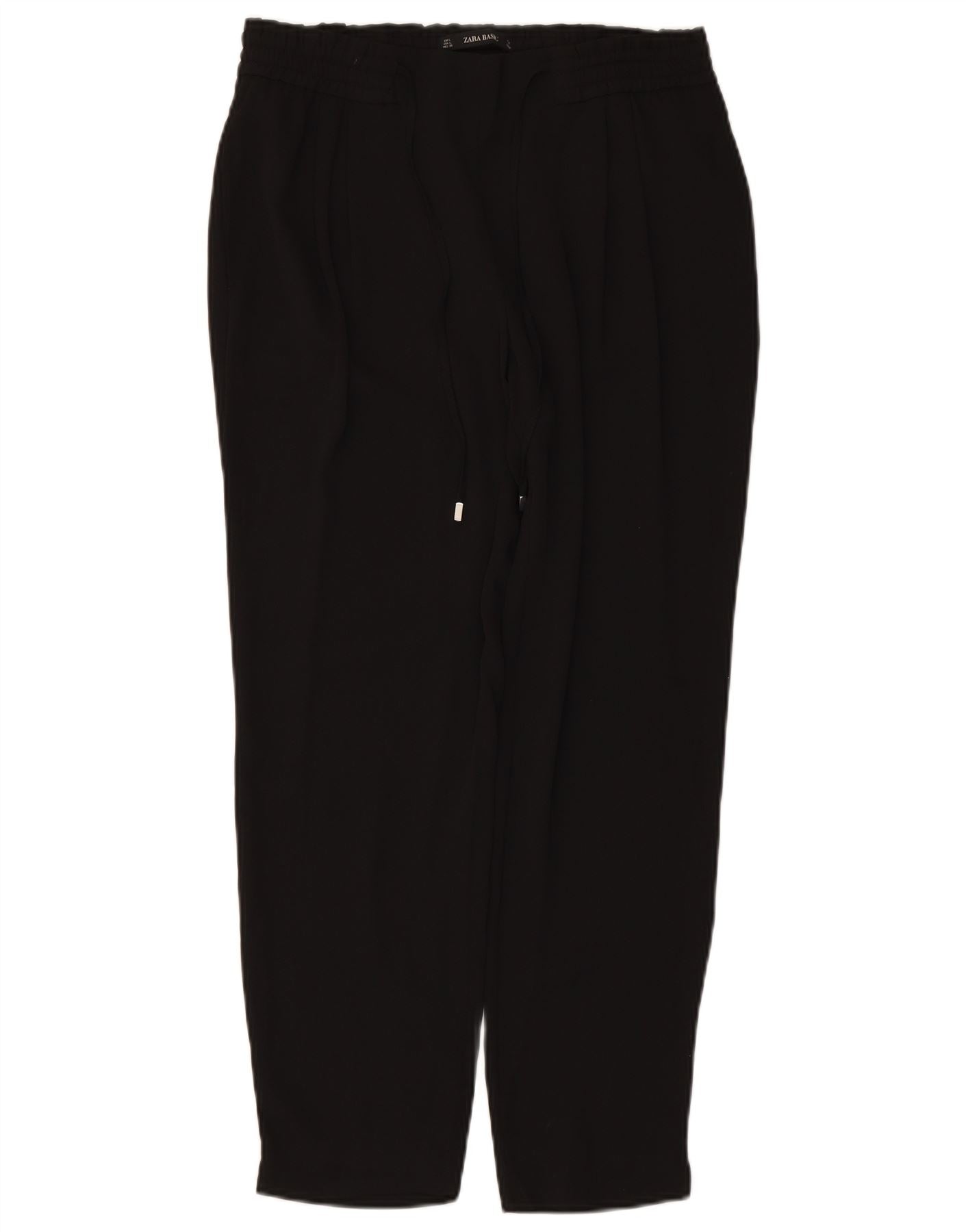 ZARA Womens High Waist Tapered Cropped Trousers UK 16 Large W34 L27 Black