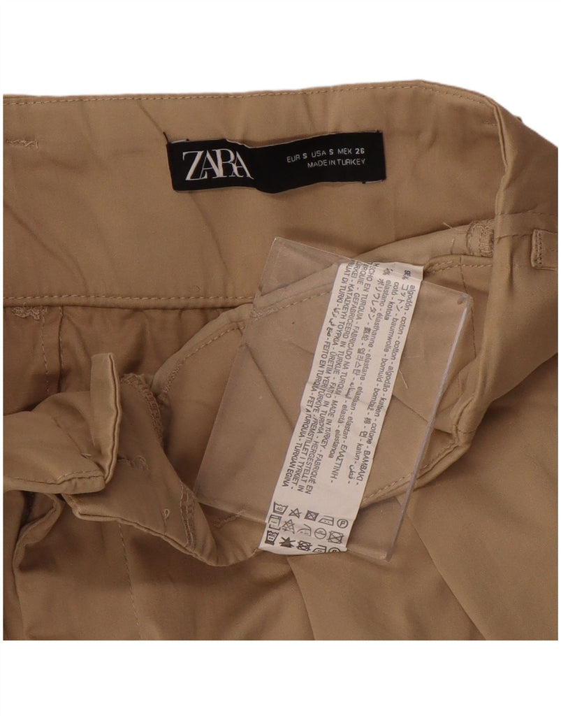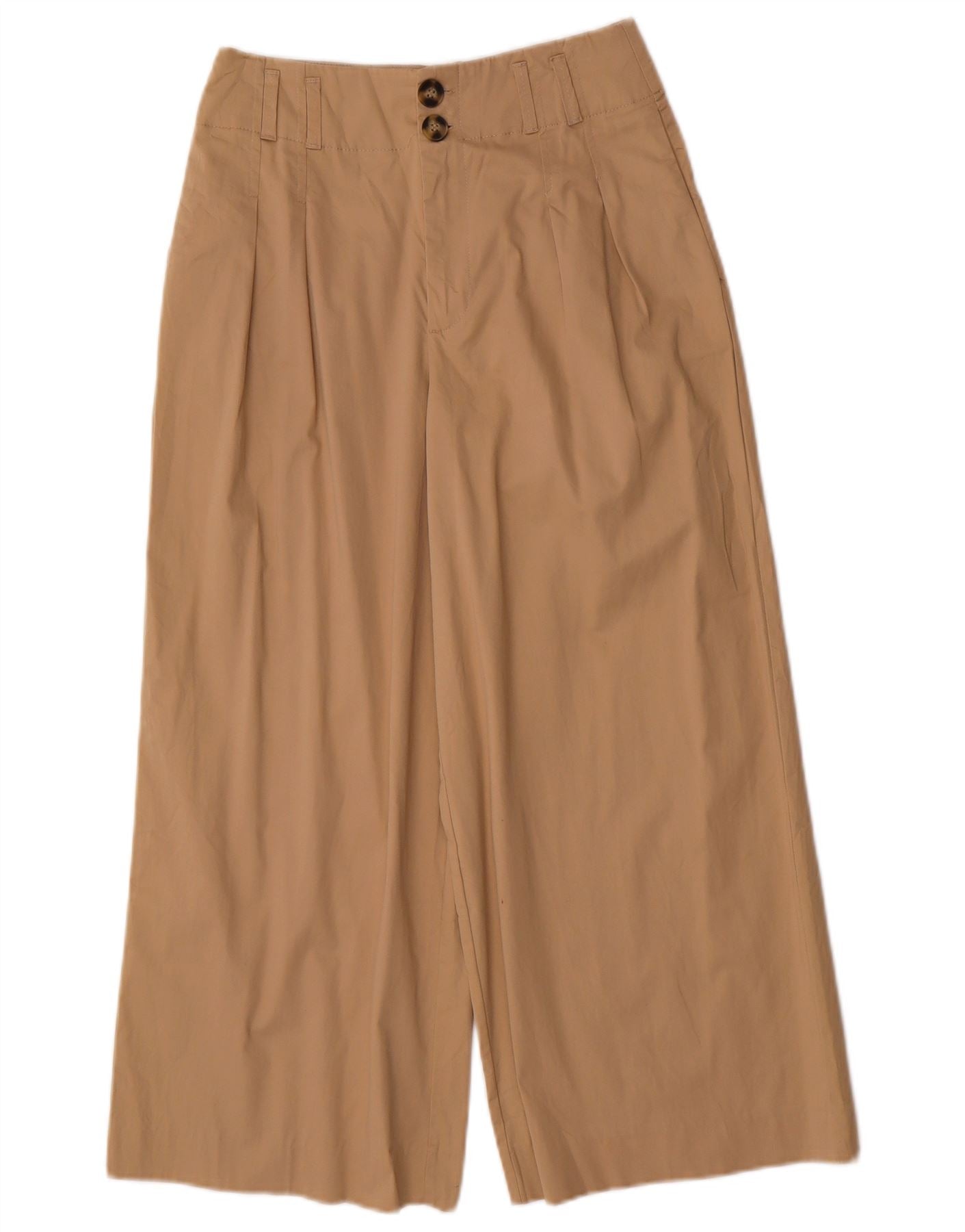 ZARA Womens High Waist Wide Leg Cropped Trousers Small W26 L23 Beige
