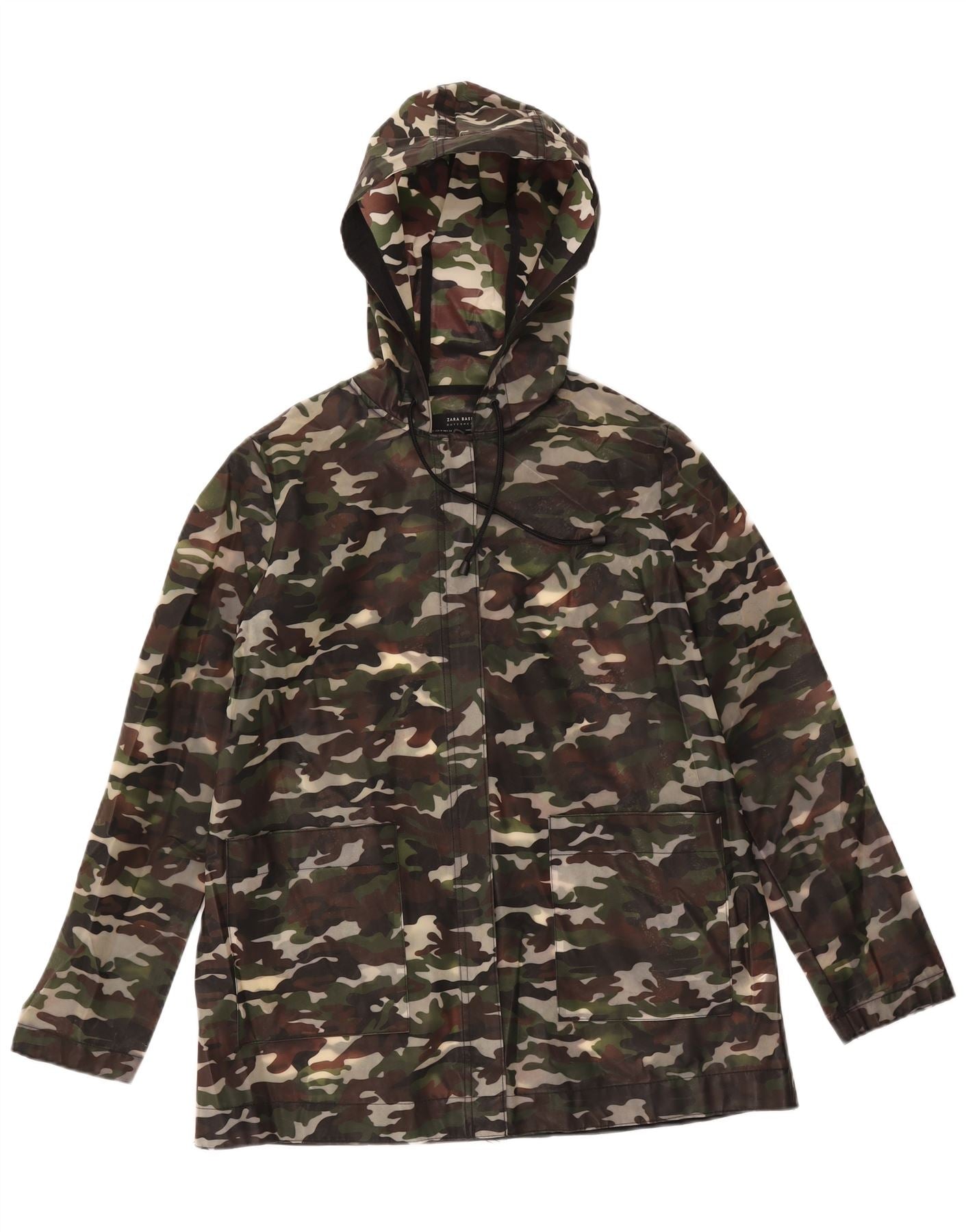 ZARA Womens Hooded Military Jacket UK 14 Medium Khaki Camouflage