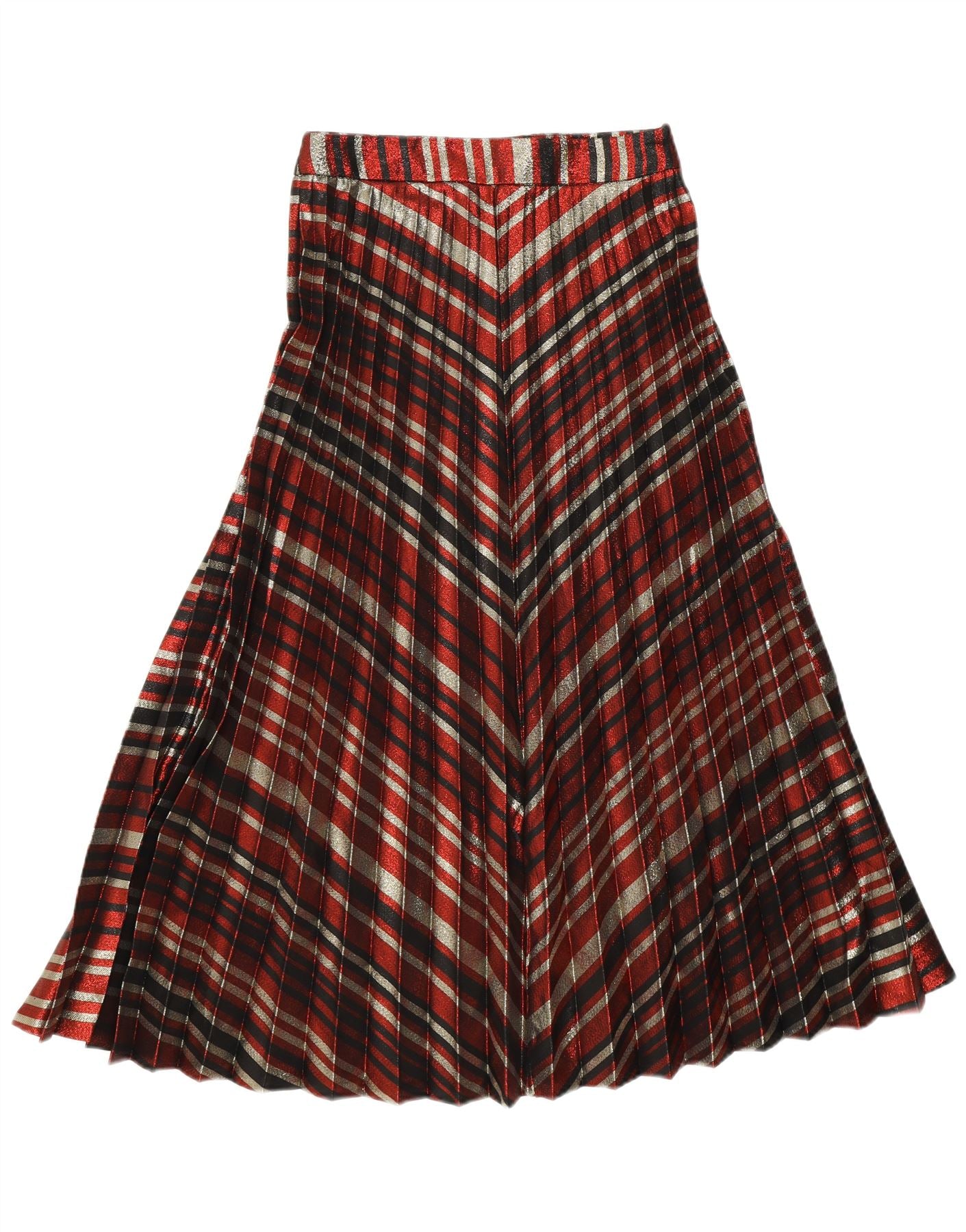 - AI Description: This Zara women's Pleated Skirt showcases a striking multicoloured plaid pattern. Crafted from woven fabric, it features metallic threads for a subtle shimmer. The elegant pleated structure ensures graceful movement and a flattering silhouette. Its comfortable pull-on design offers effortless wear. This regular fit skirt provides versatile styling for any occasion.