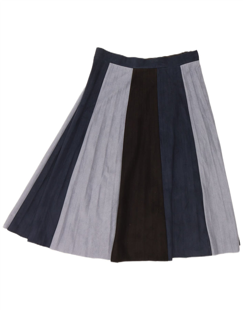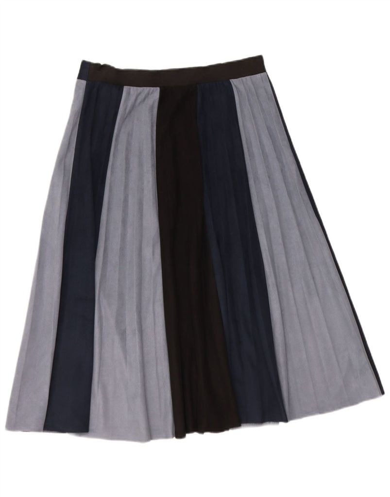 ZARA Womens Knife Pleated Skirt W30 Medium Navy Blue Colourblock Polyester