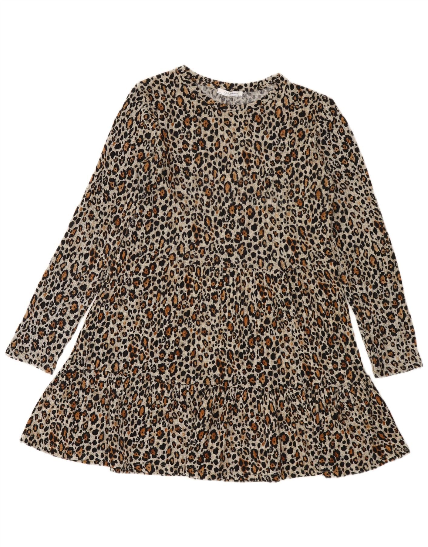 Zara Womens Long Sleeve A-Line Dress UK 12 Medium Grey Animal Print