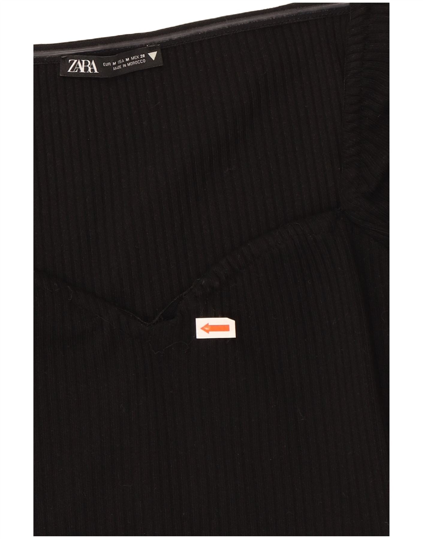 ZARA Womens Long Sleeve Bodysuit UK 12 Medium Black Cotton