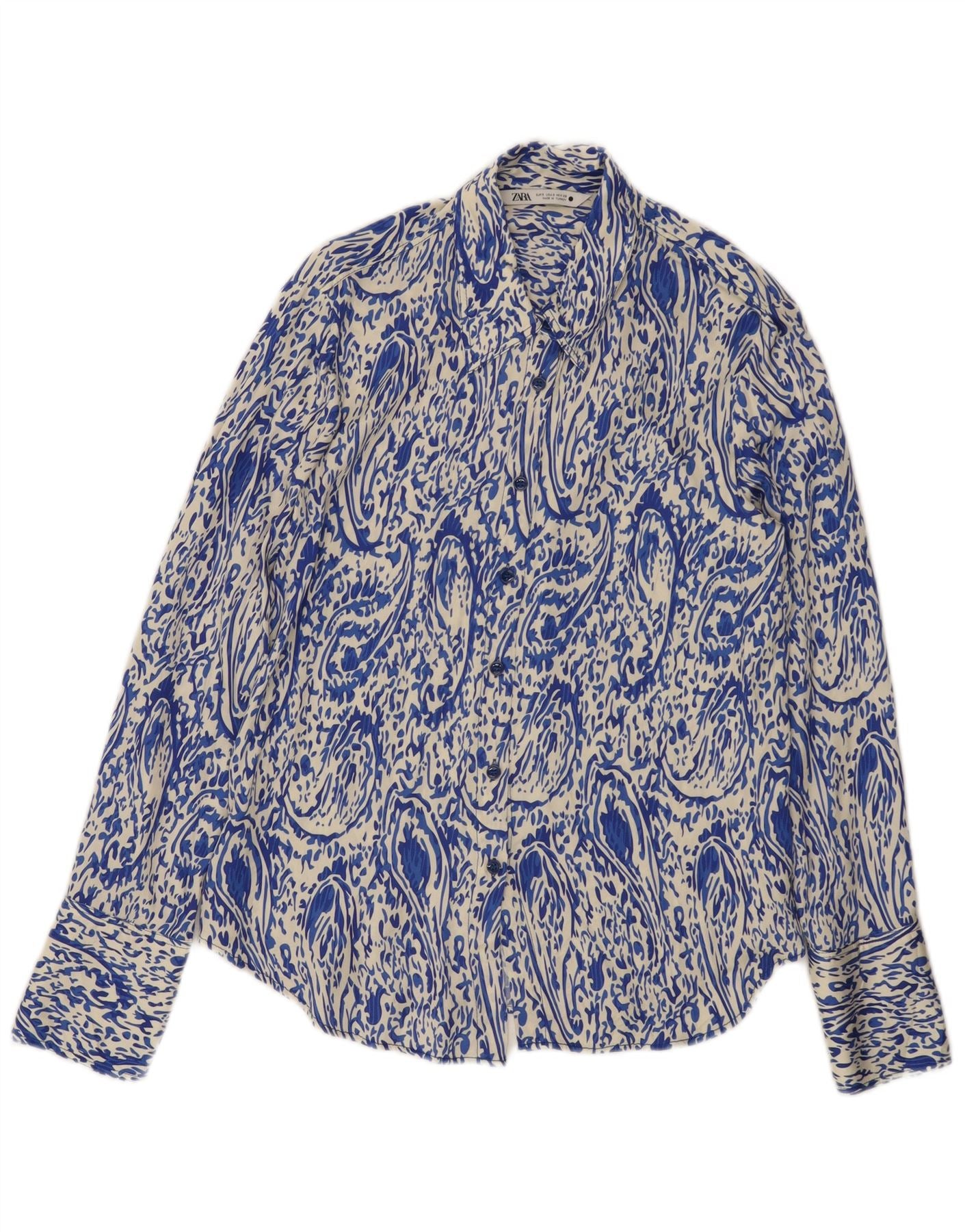 Zara Womens Loose Fit Shirt UK 10 Small Blue Paisley