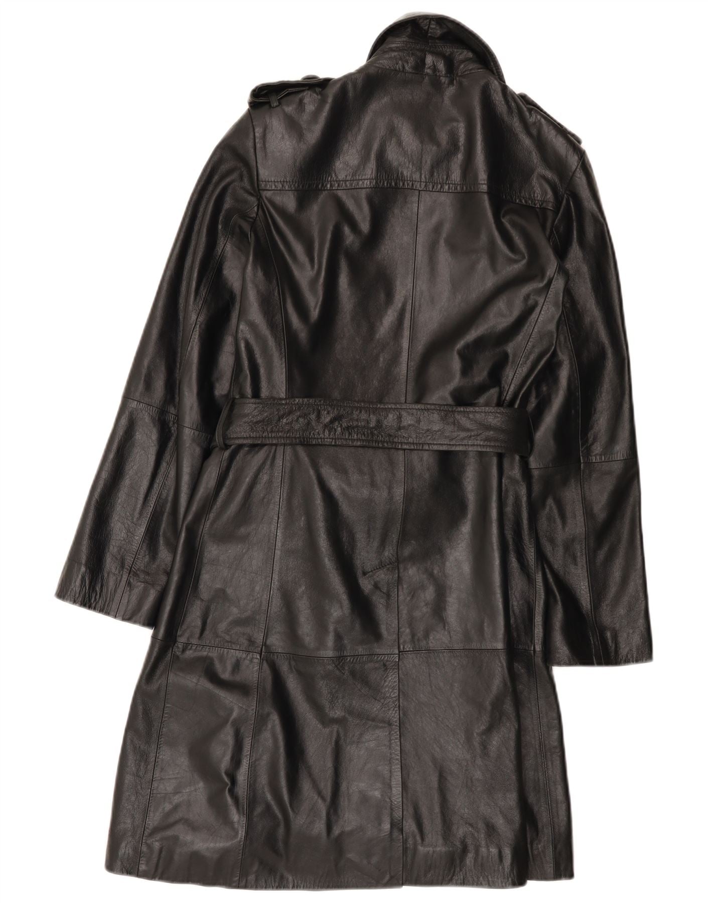 Zara Womens Military Leather Coat UK 10 Small Black Leather