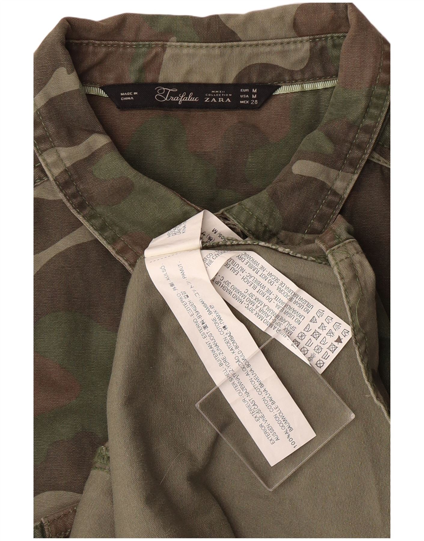 ZARA Womens Military Shirt UK 12 Medium Khaki Camouflage Cotton