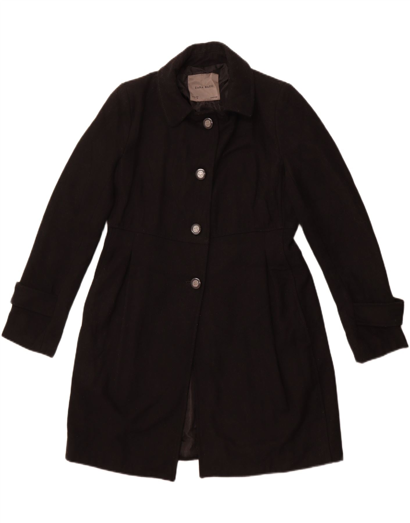 ZARA Womens Overcoat UK 14 Large Black Wool