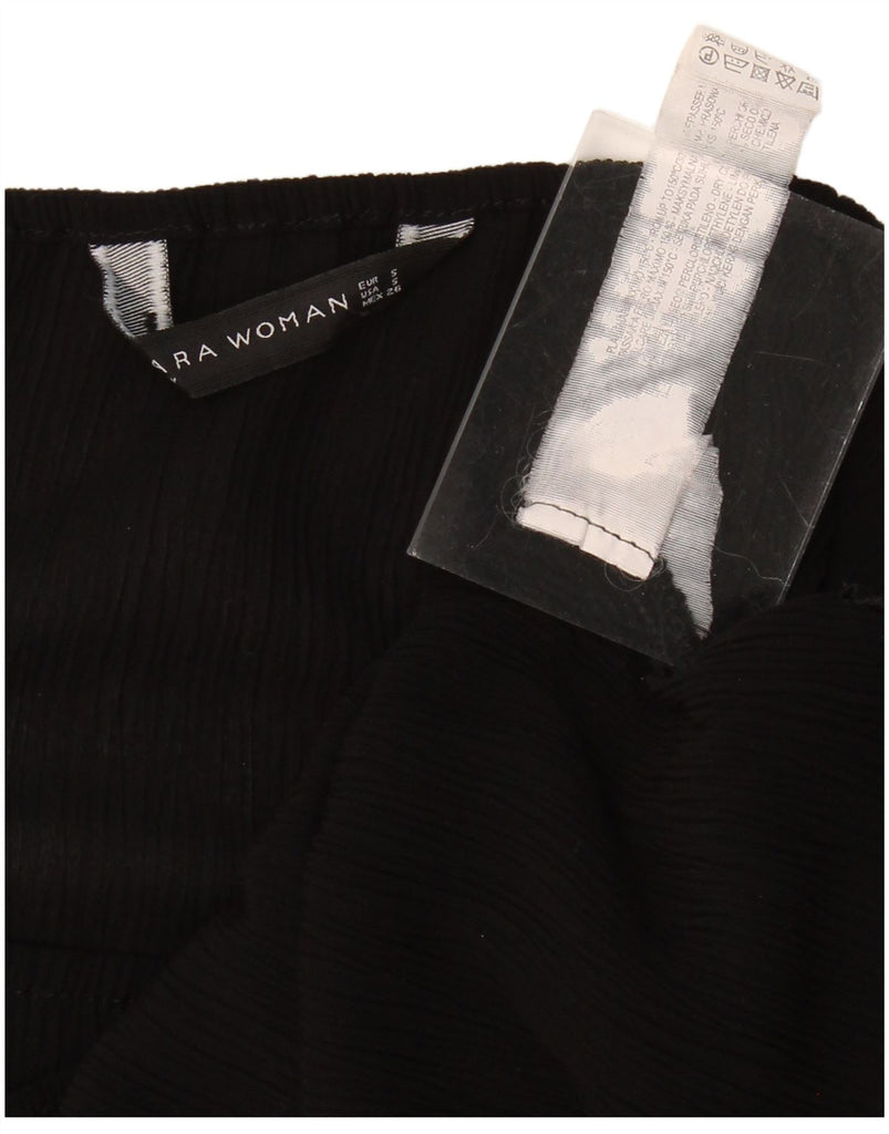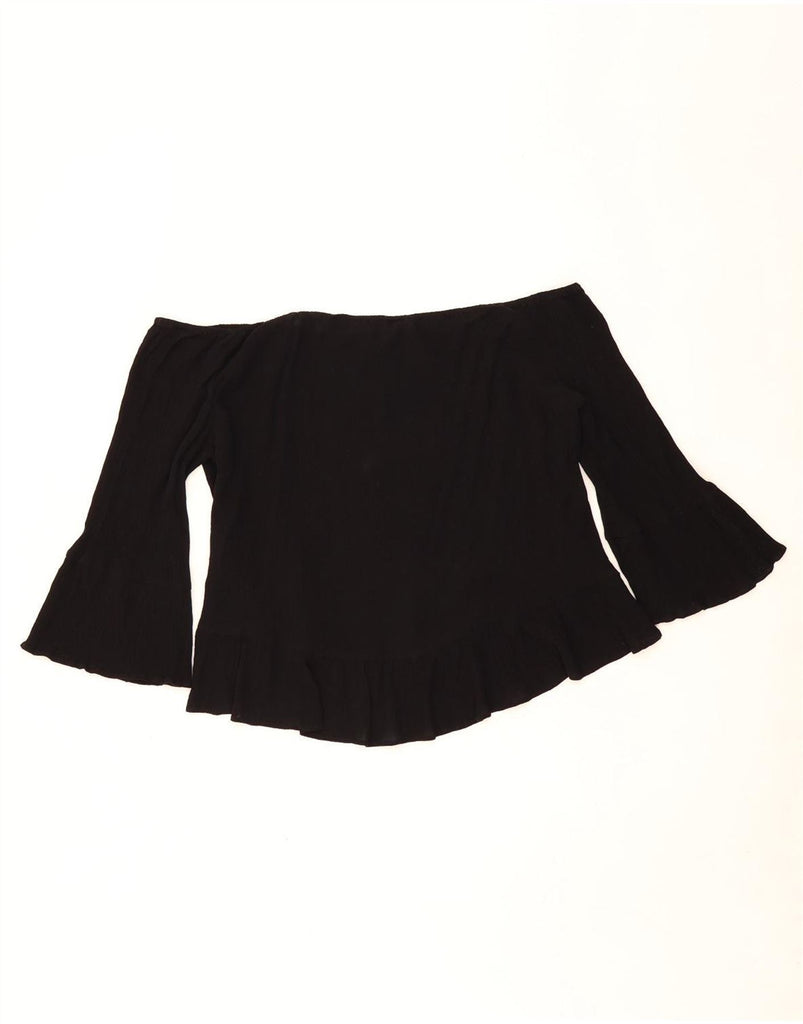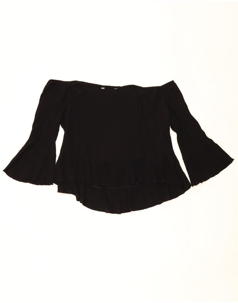 ZARA Womens Oversized 3/4 Sleeve Crop Off Shoulder Top UK 10 Small Black