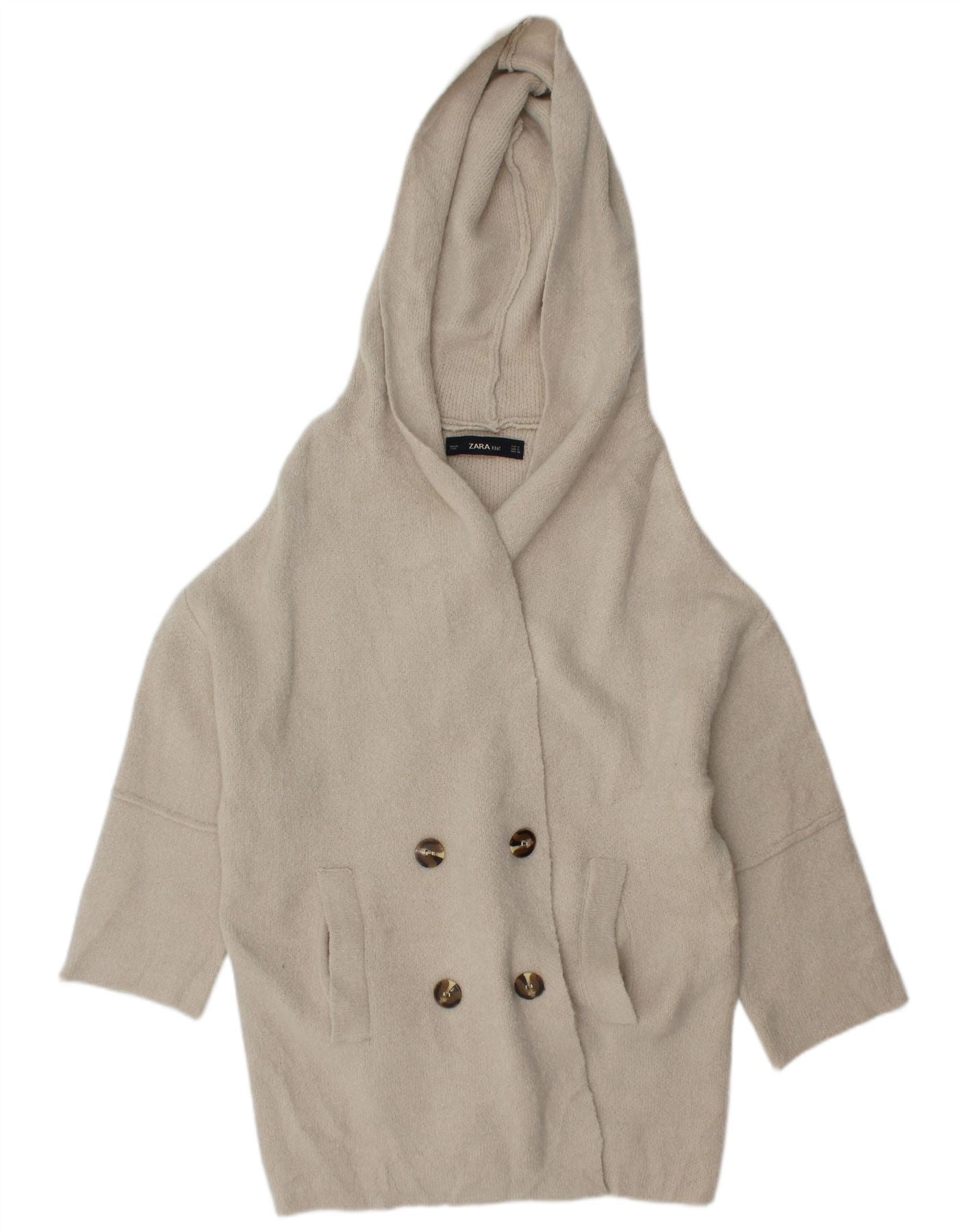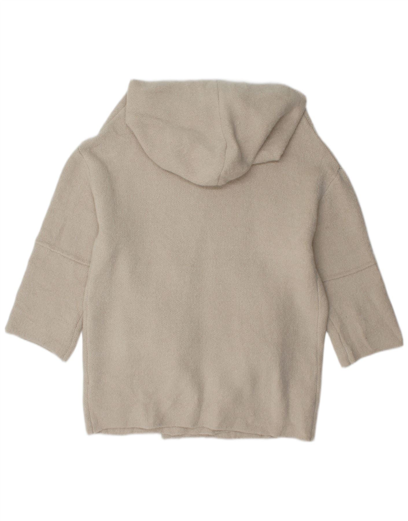 ZARA Womens Oversized Batwing Hooded Cardigan Sweater UK 10 Small White