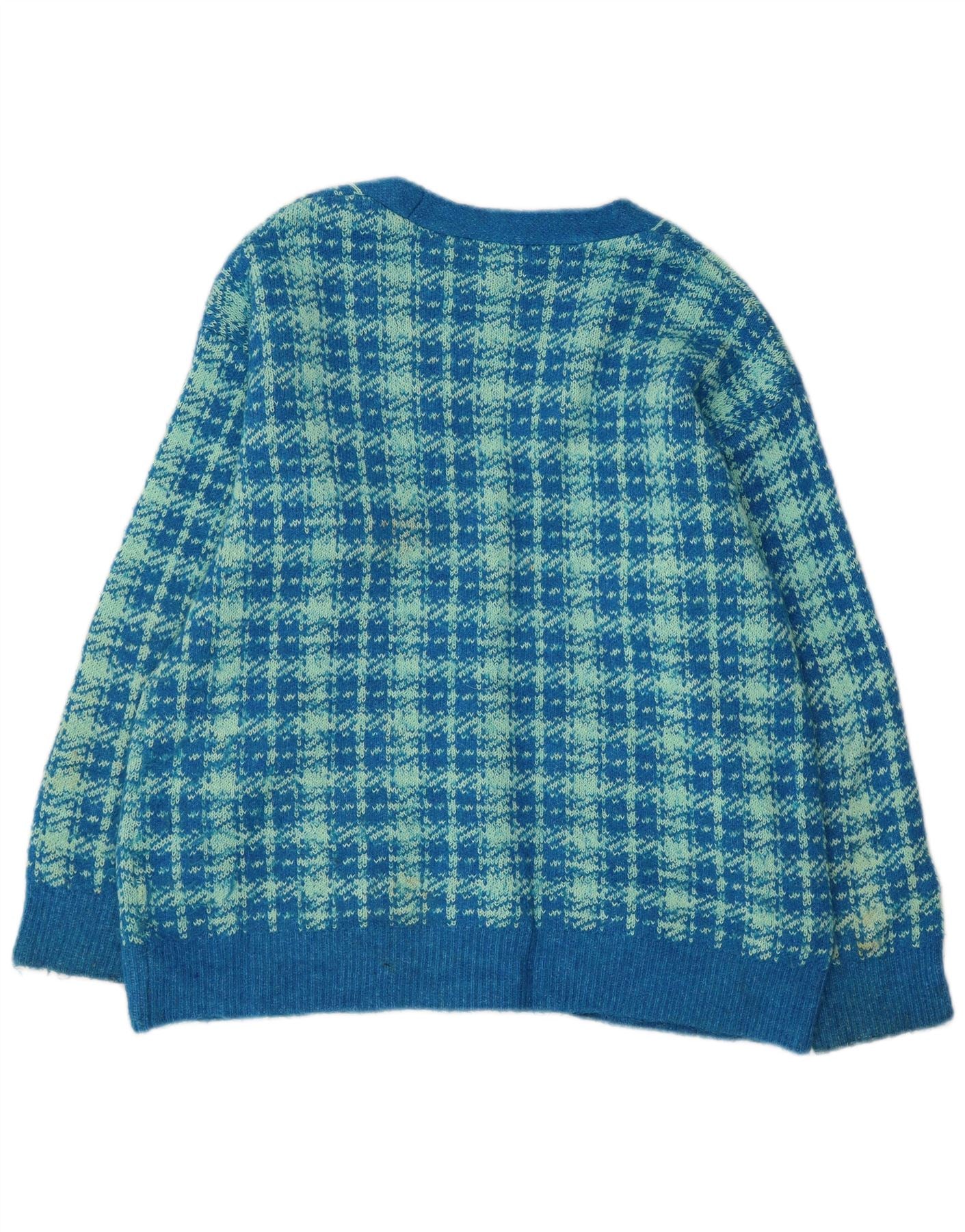 - AI Description: This Zara womens cardigan sweater is crafted from a soft blue knit cotton blend. It features a distinctive check pattern in varying shades of blue and turquoise. The V-neckline and button-up front offer a classic silhouette. Long sleeves and a relaxed fit ensure comfortable wear. Two front pockets with button accents add practical and stylish detail.