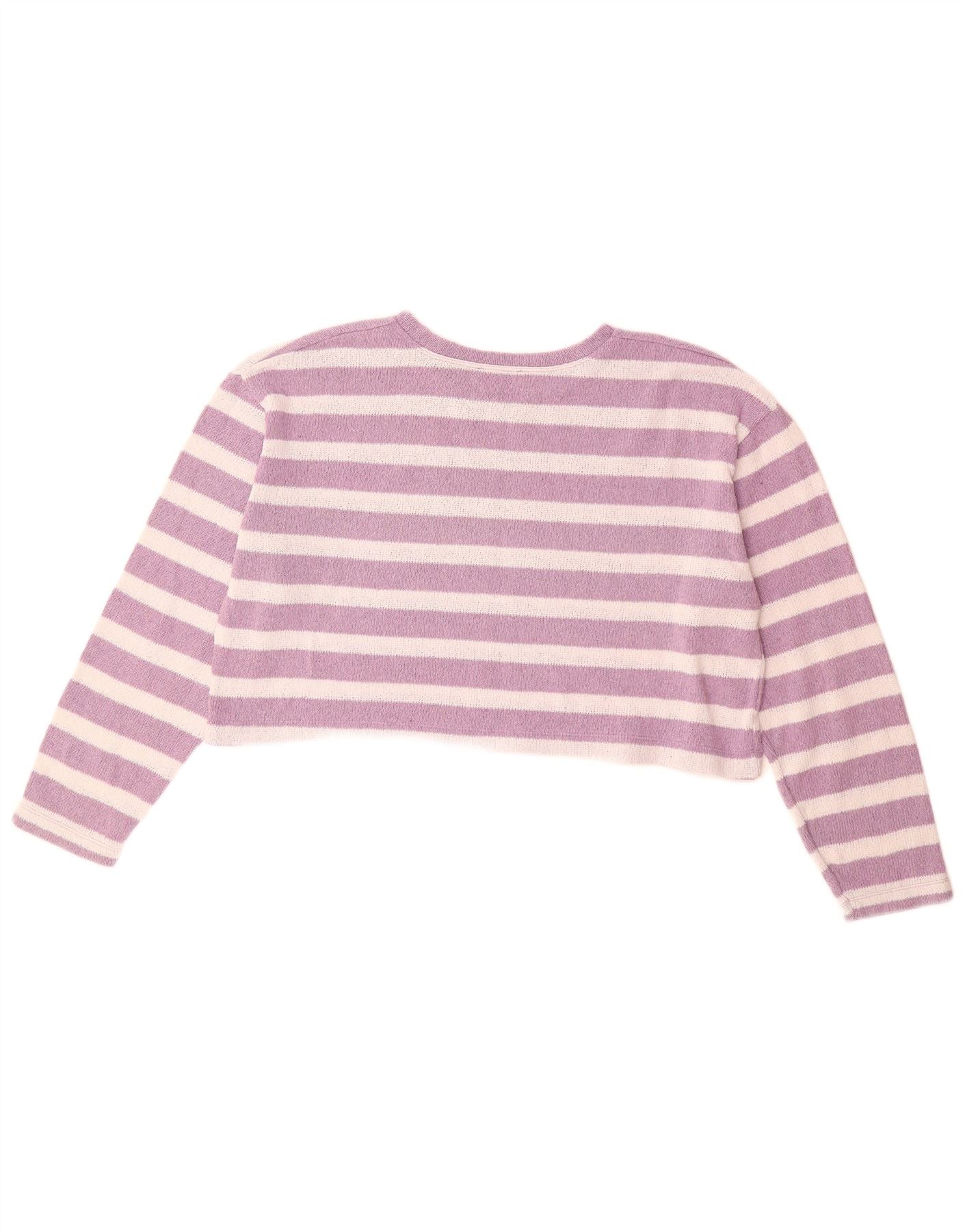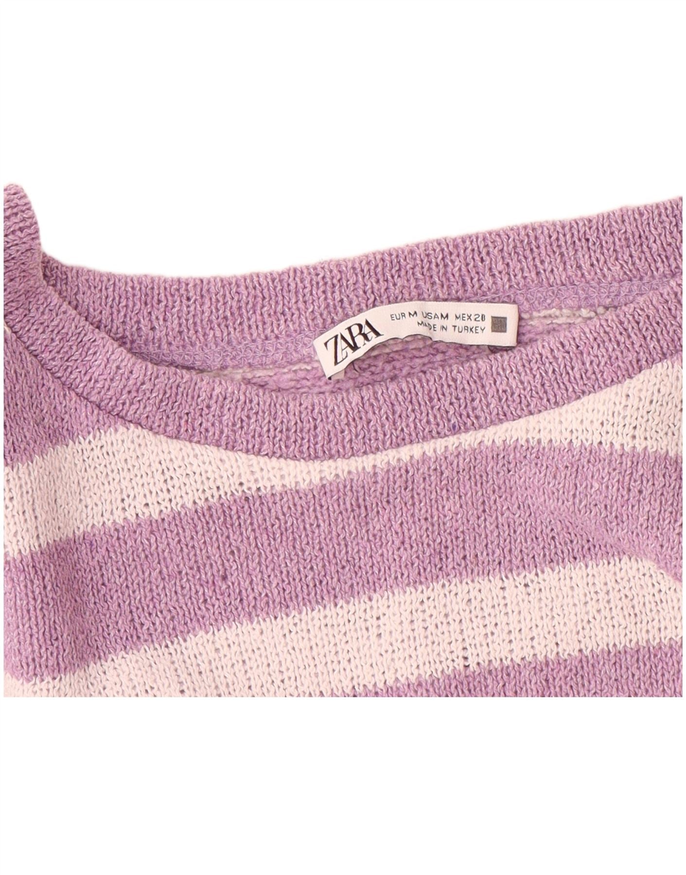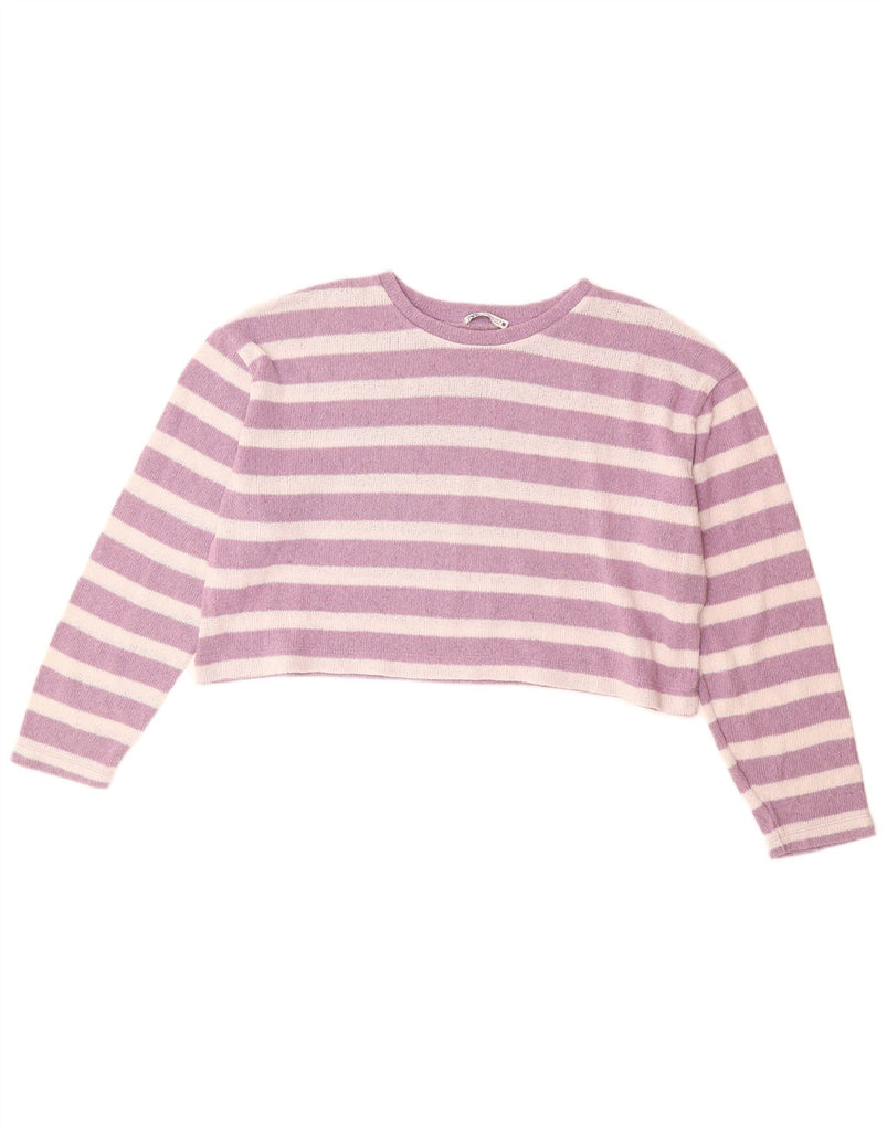 ZARA Womens Oversized Crew Neck Jumper Sweater UK 14 Medium Purple Striped