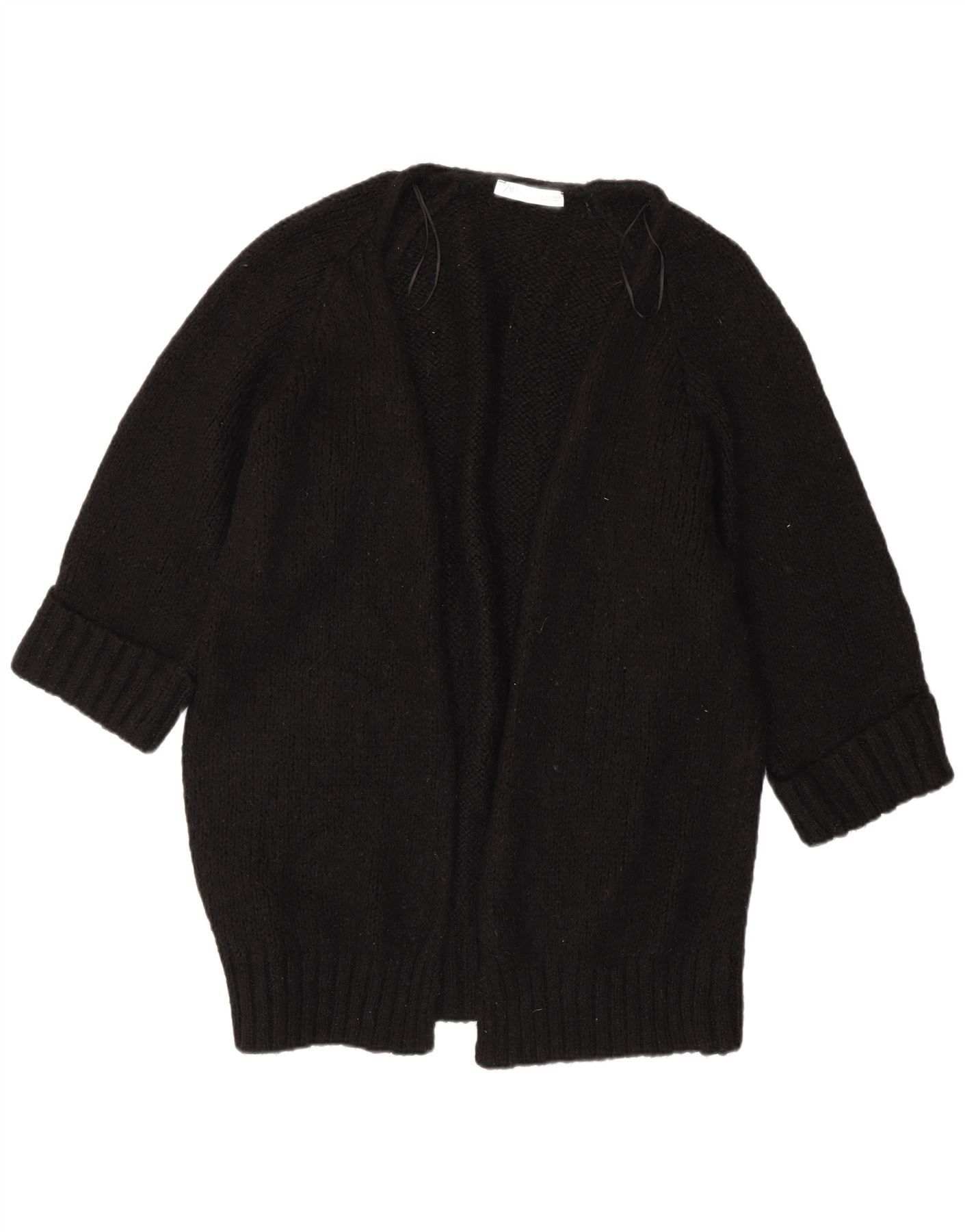 ZARA Womens Oversized Longline Open Cardigan Sweater UK 10 Small Black