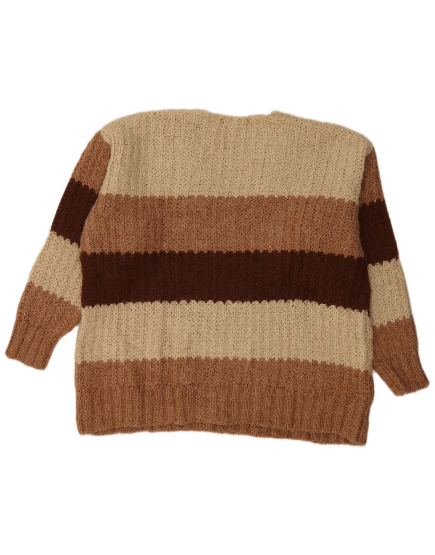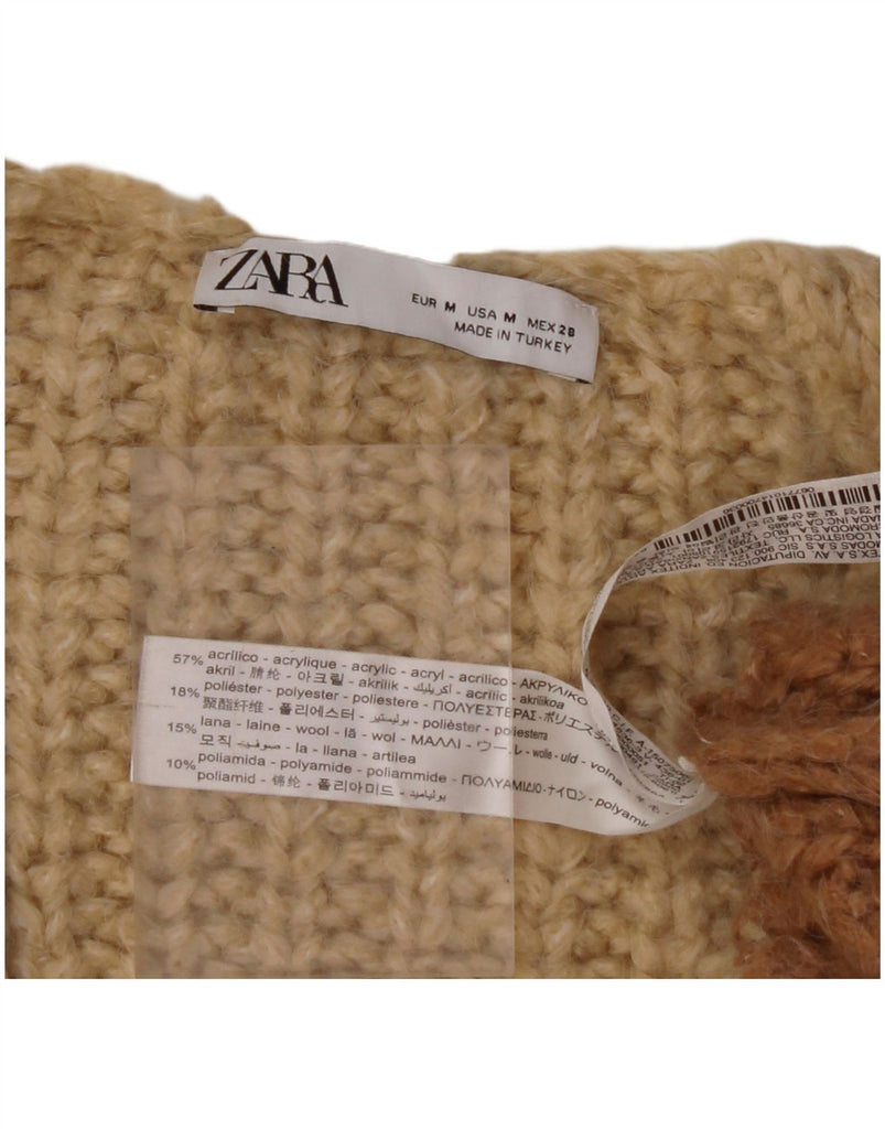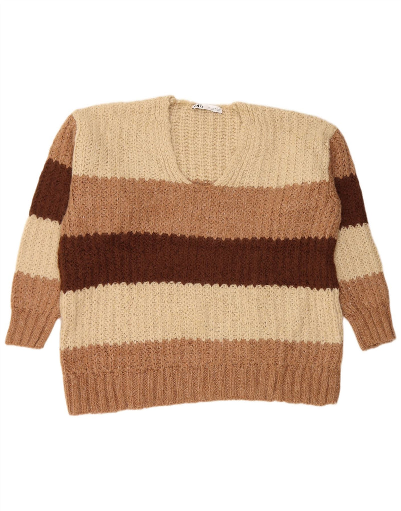 ZARA Womens Oversized V-Neck Jumper Sweater UK 14 Medium Beige Striped