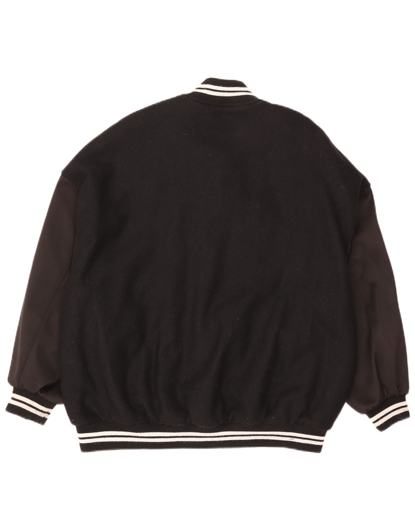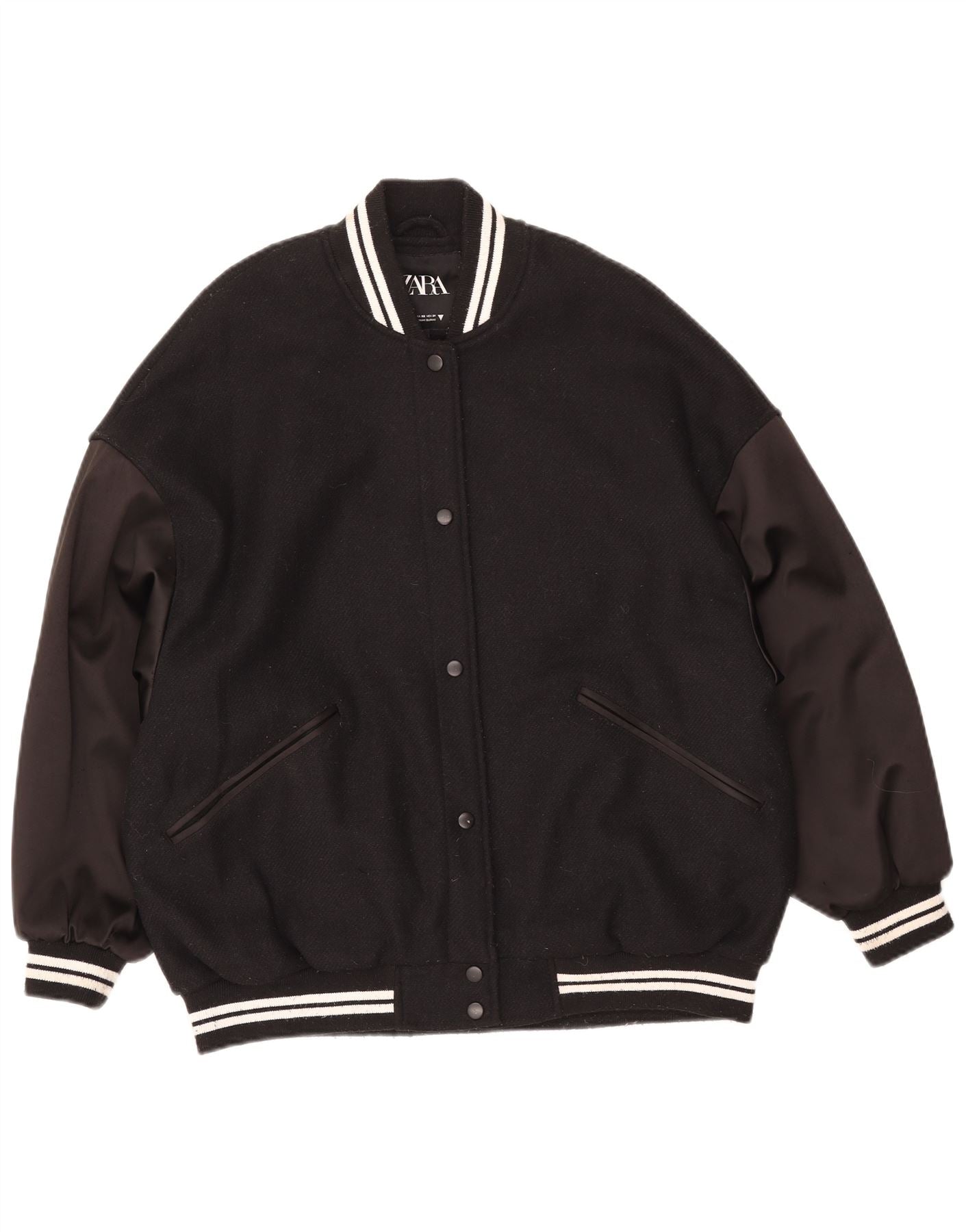 ZARA Womens Oversized Varsity Jacket UK 6 XS Black Colourblock Wool