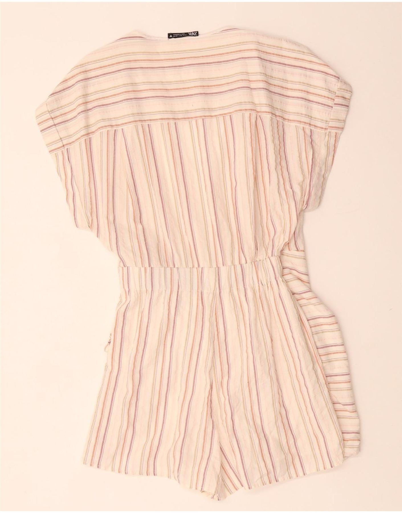 ZARA Womens Playsuit UK 10 Small Off White Striped