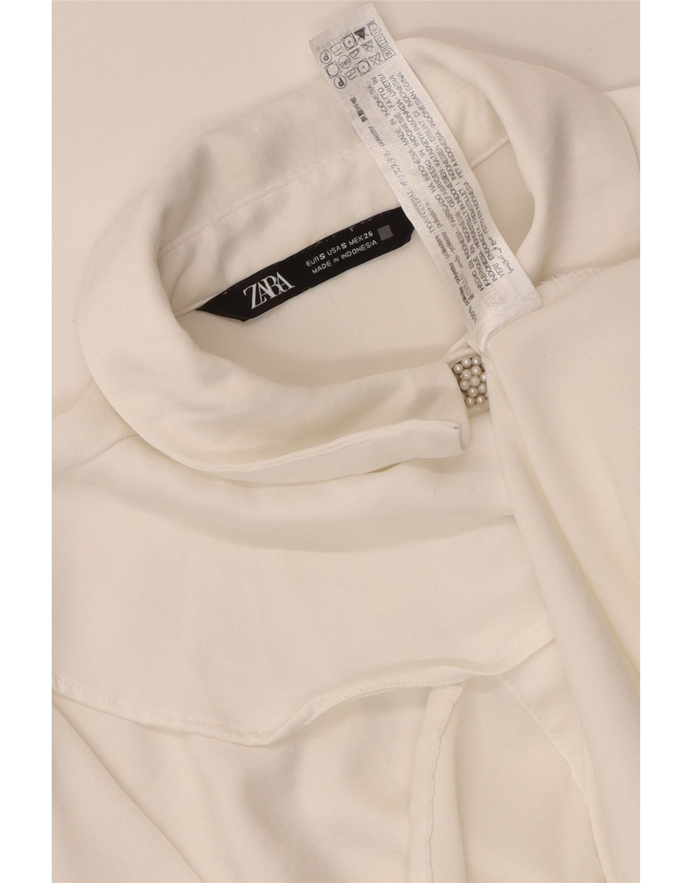 ZARA Womens Ruffle Front Shirt Blouse UK 10 Small White Polyester