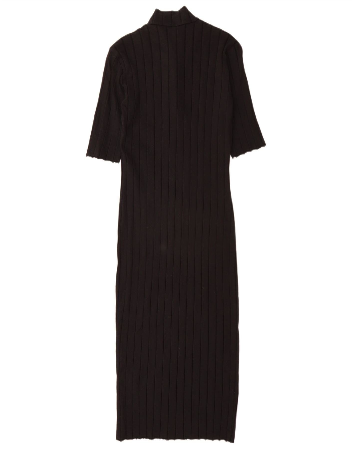 Zara Womens Short Sleeves Bodycon Dress UK 12 Medium Black Cotton