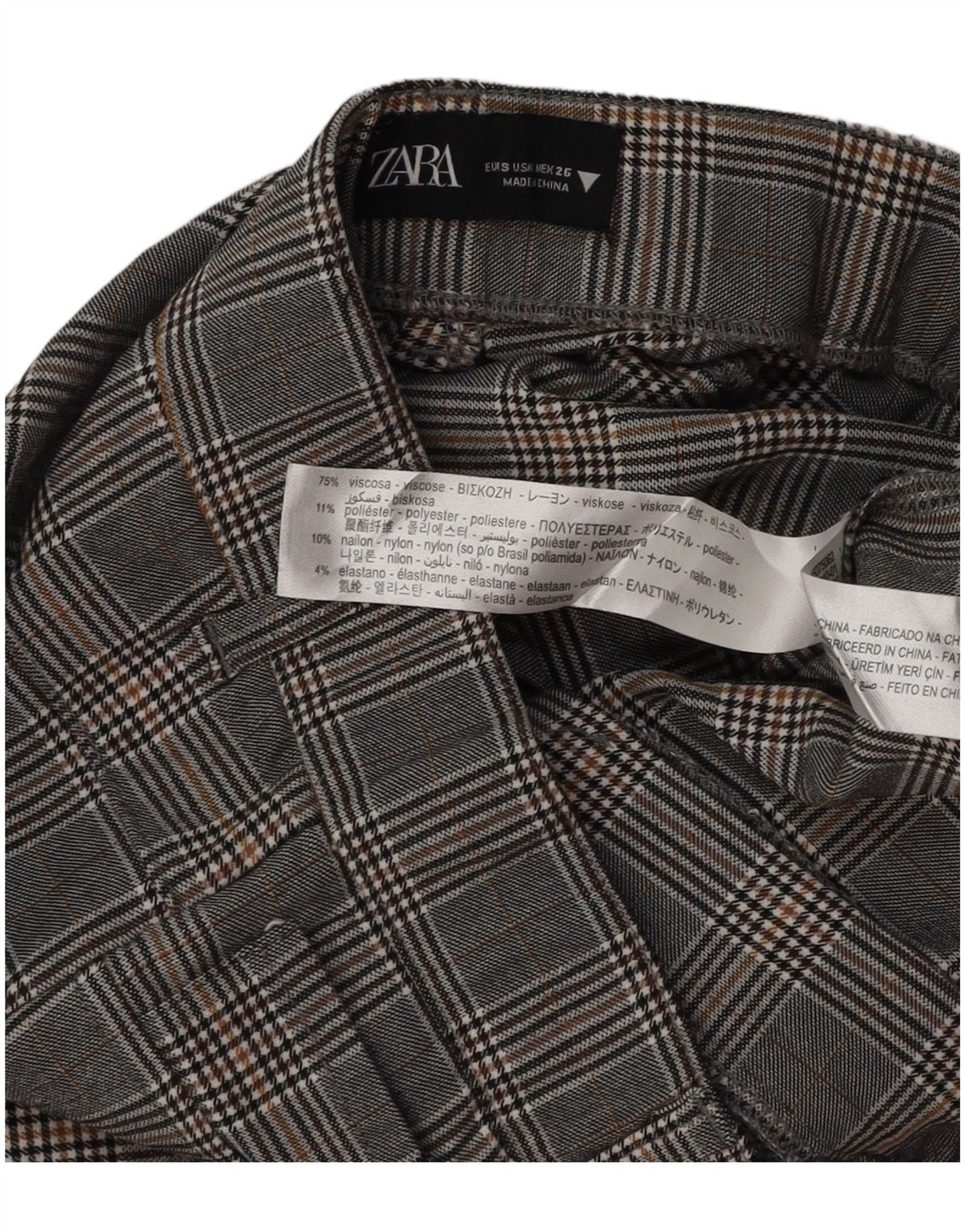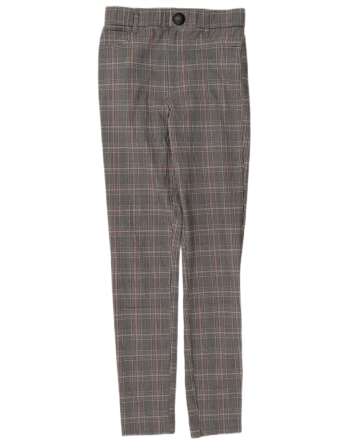 ZARA Womens Skinny Casual Trousers Small W26 L28 Grey Houndstooth Viscose