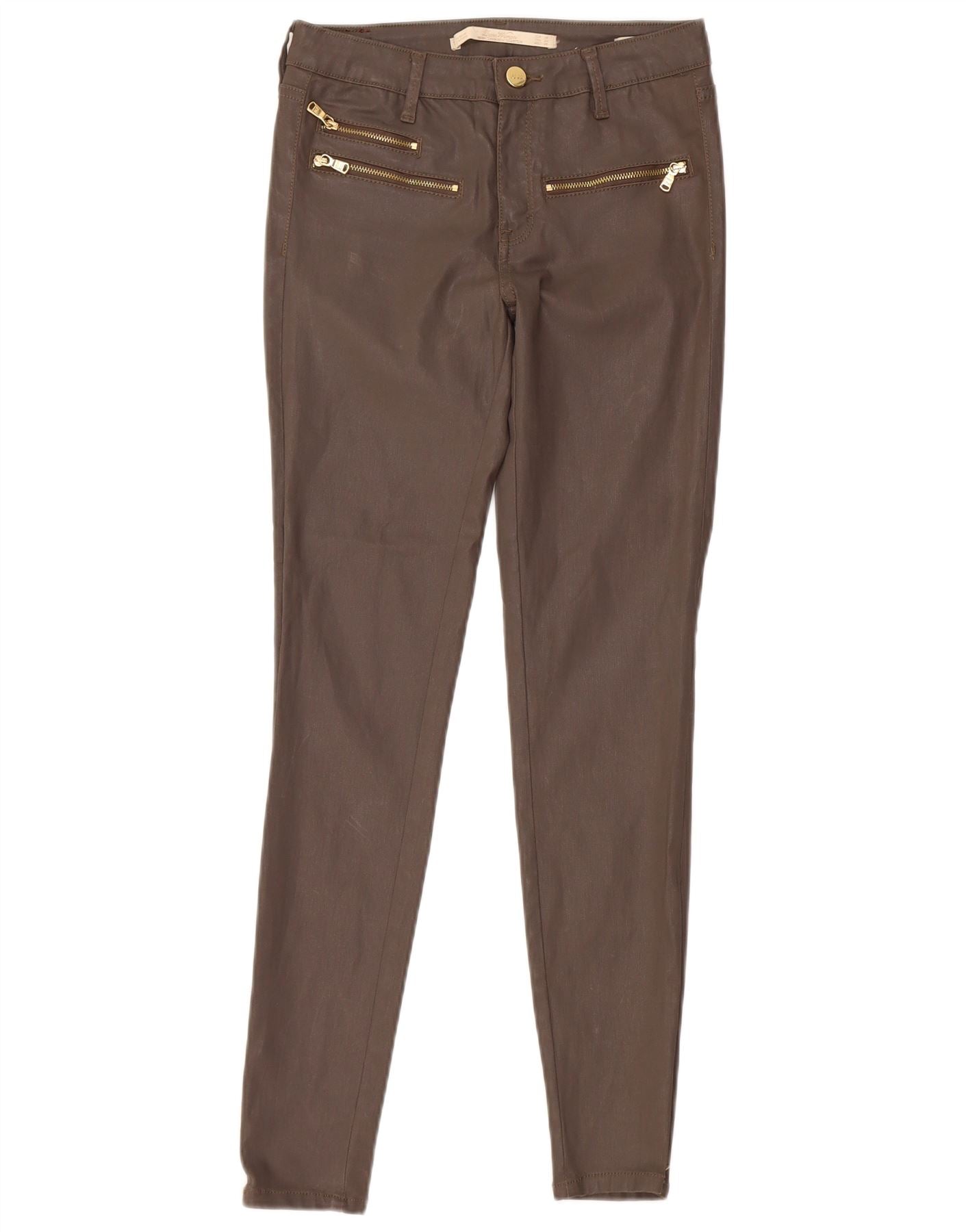 ZARA Womens Skinny Casual Trousers W26 L28 Brown Cotton