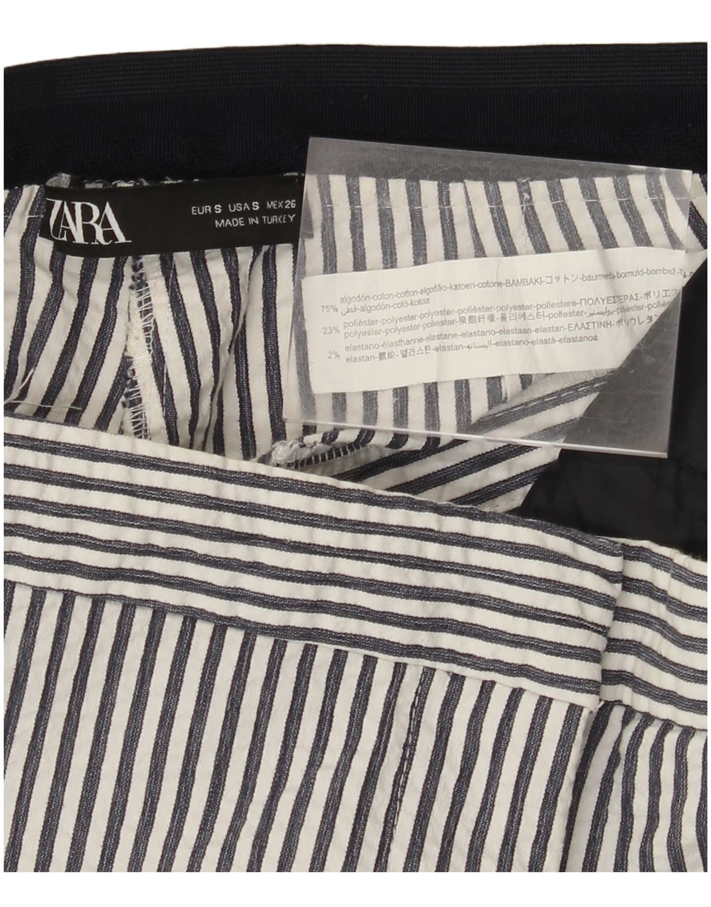 ZARA Womens Slim Chino Trousers Small W26 L27 White Striped Cotton