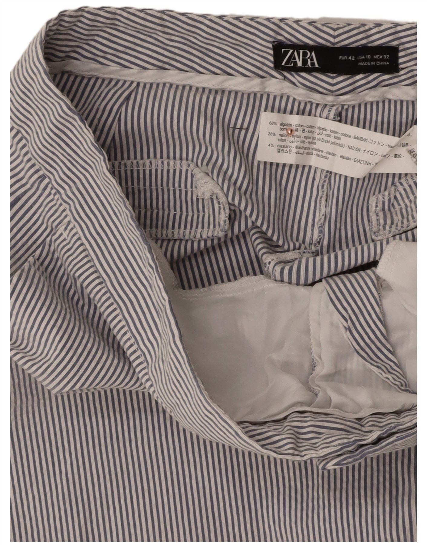 ZARA Womens Slim Cropped Trousers EU 42 Large W32 L25 Navy Blue Pinstripe