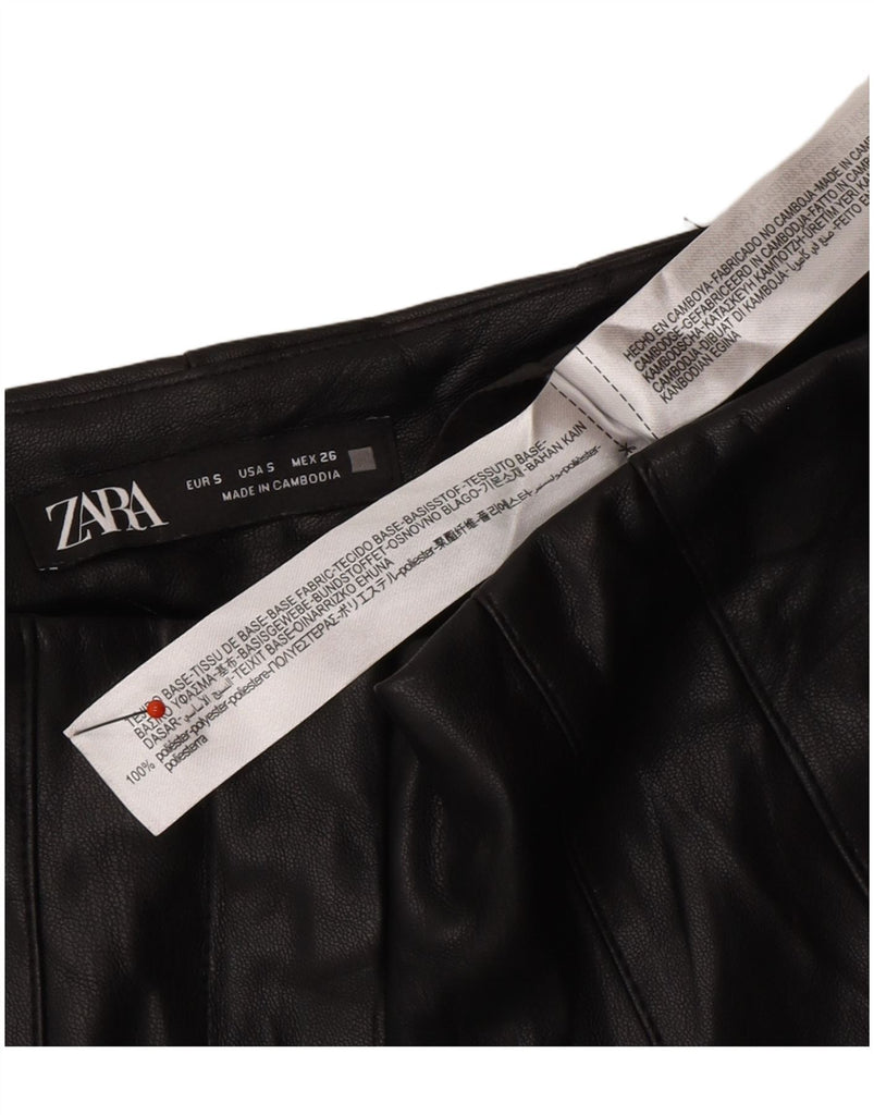 ZARA Womens Tapered Faux Leather Trousers Small W26 L27 Black Polyester