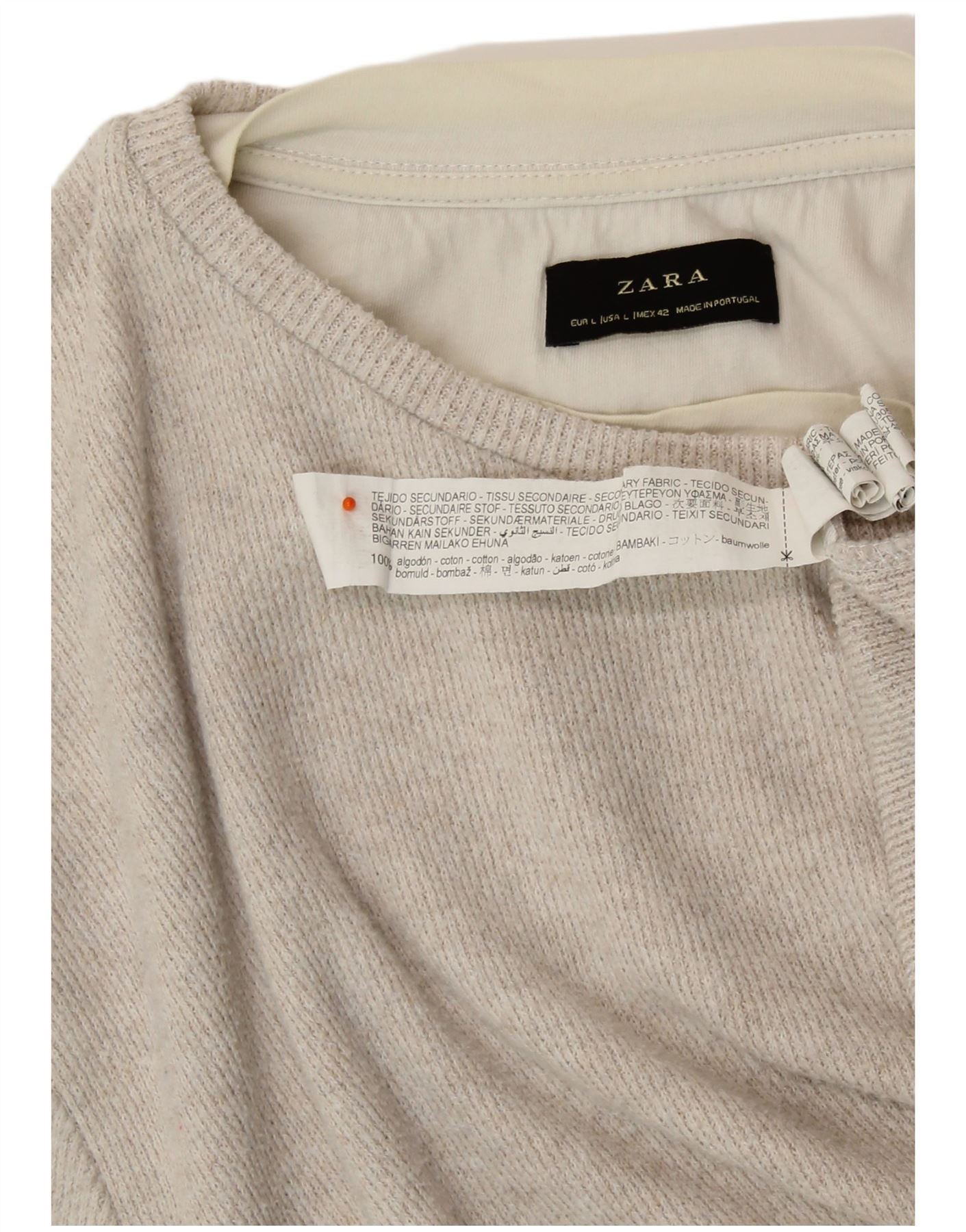 ZARA Womens Top Long Sleeve UK 16 Large Beige Cotton