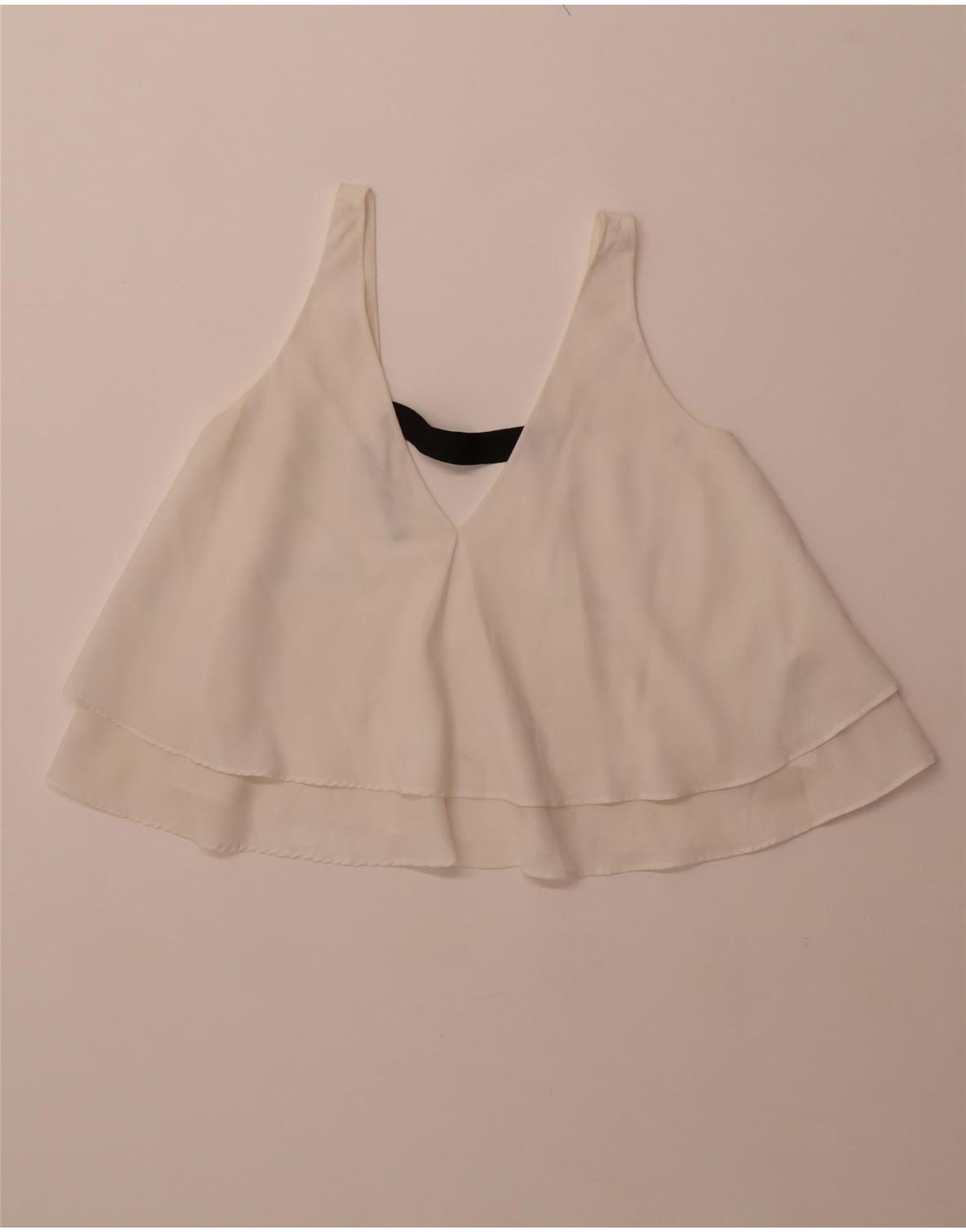 ZARA Womens Trafaluc Sleeveless Loose Fit Crop Top UK 10 Small Off White