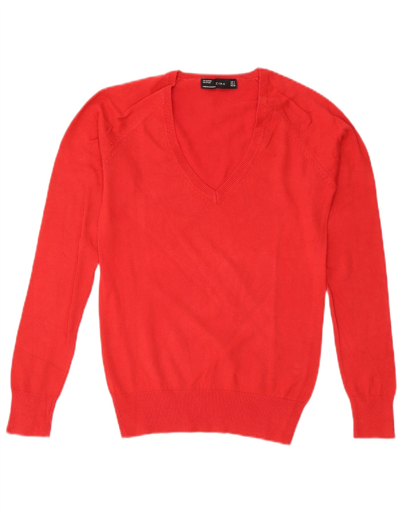 ZARA Womens V-Neck Jumper Sweater UK 10 Small Red Cotton