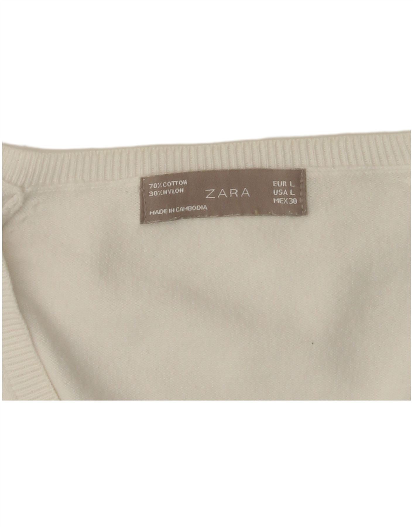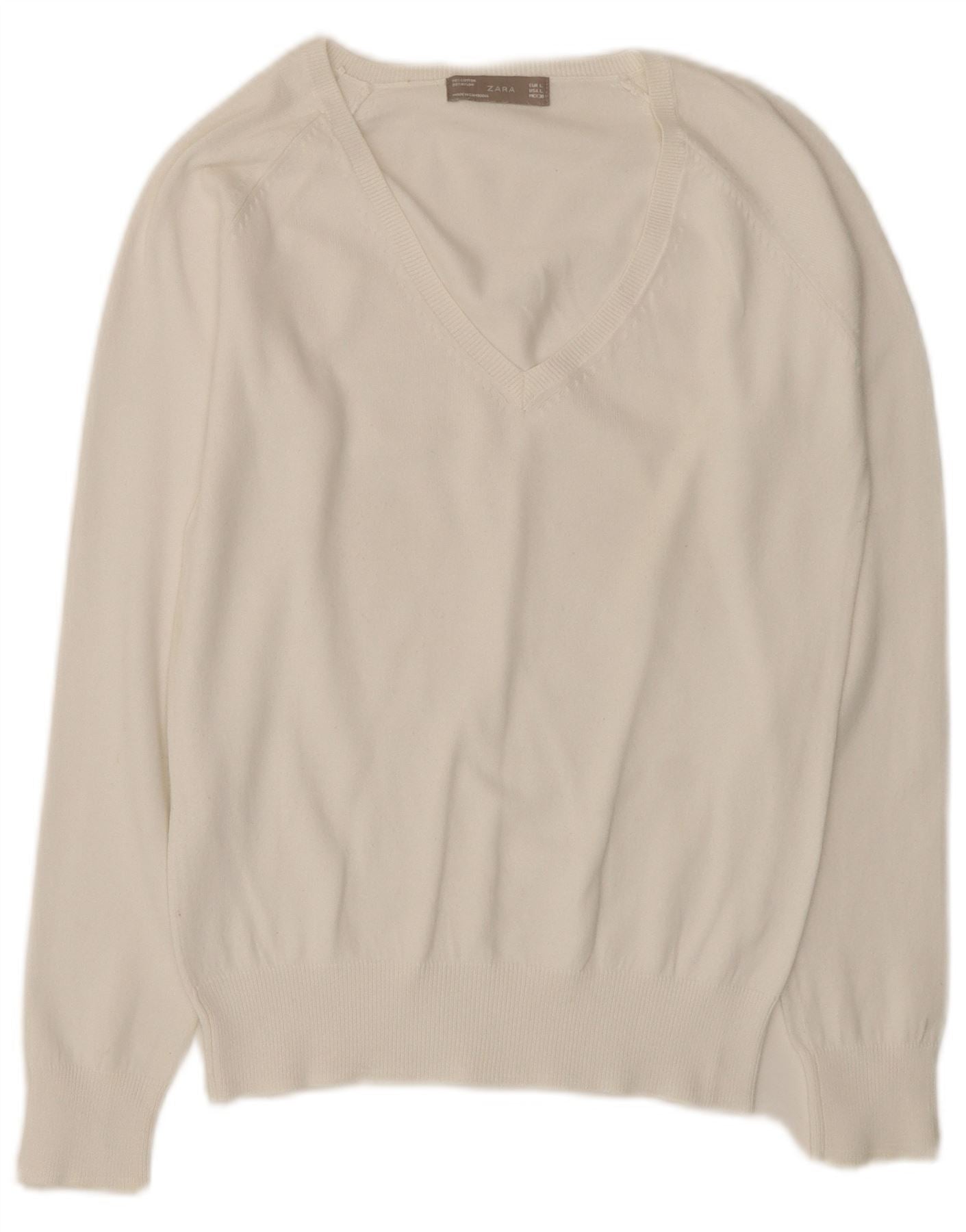 ZARA Womens V-Neck Jumper Sweater UK 14 Large White