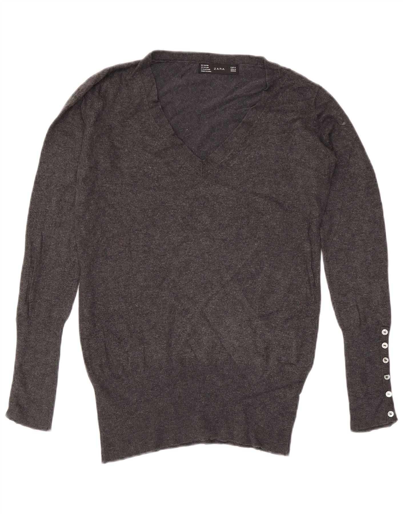 ZARA Womens V-Neck Jumper Sweater UK 14 Medium Grey Rayon
