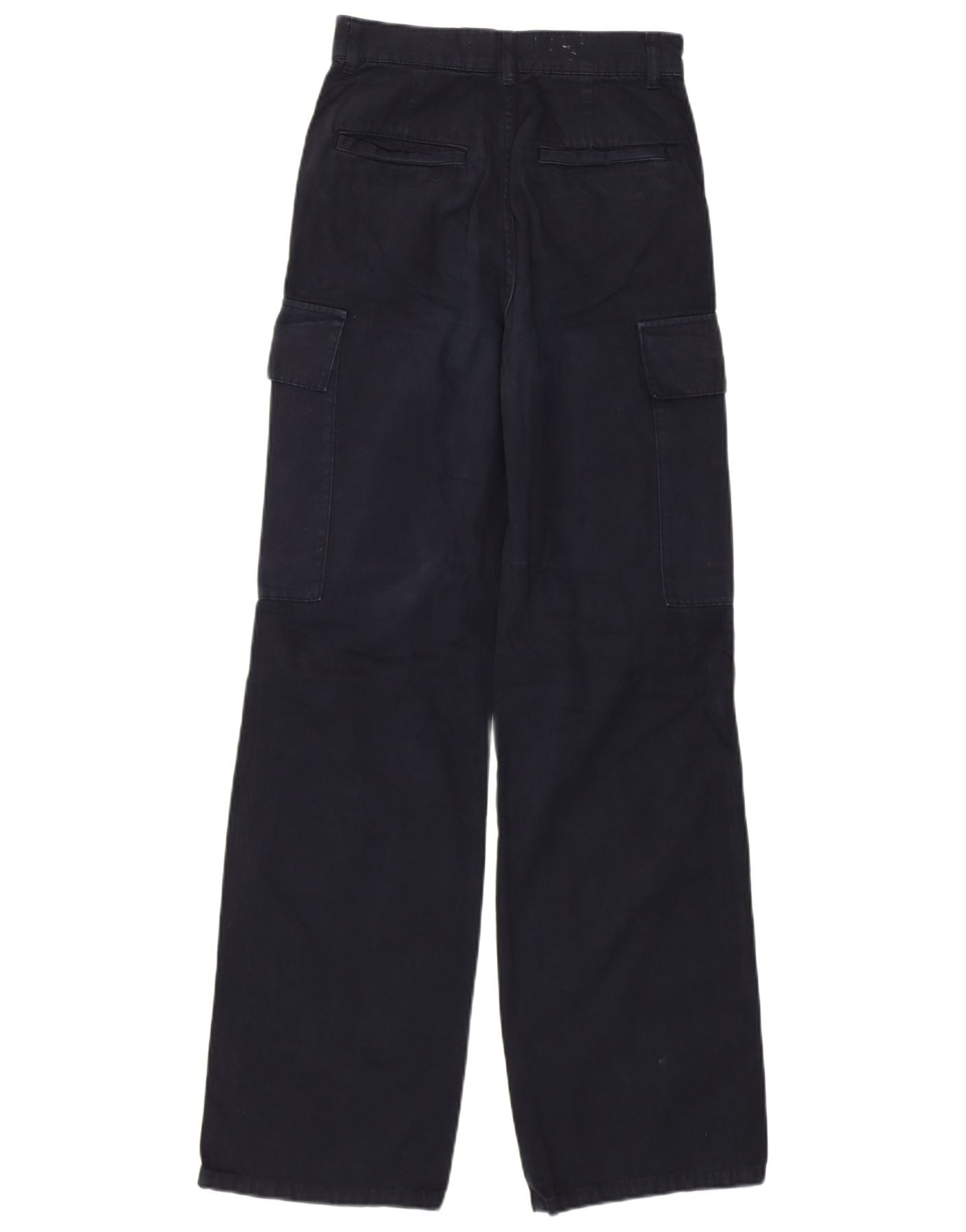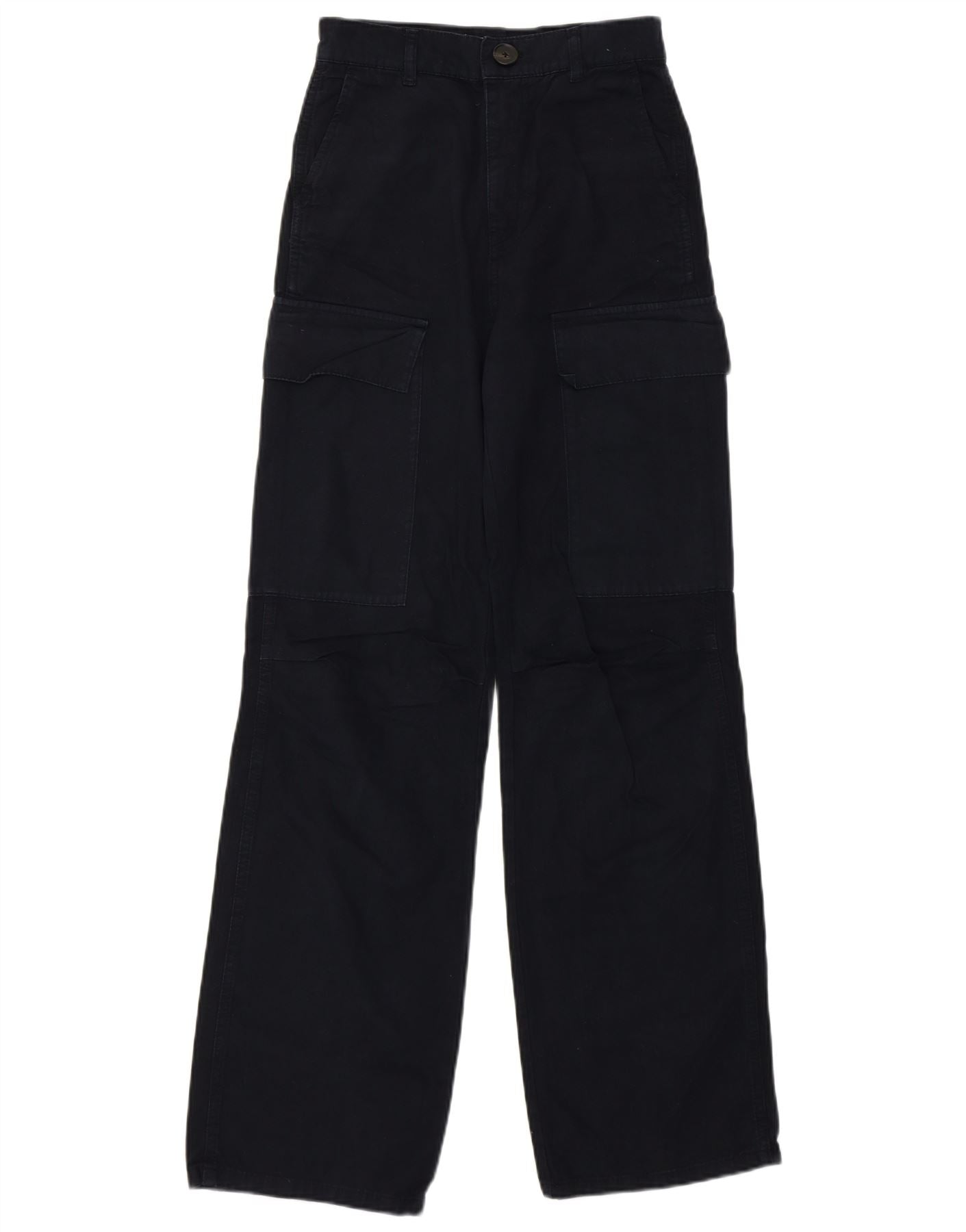 Zara Womens Wide Leg High Waist Cargo Trousers W22 L31 Black Cotton