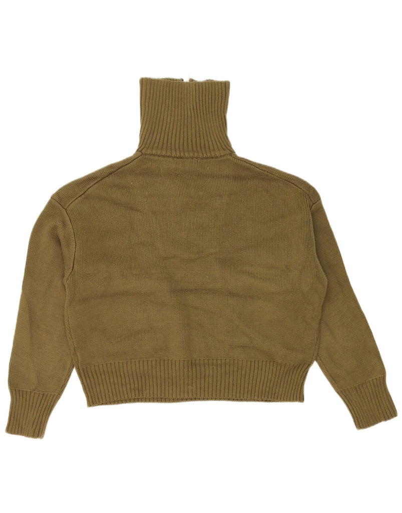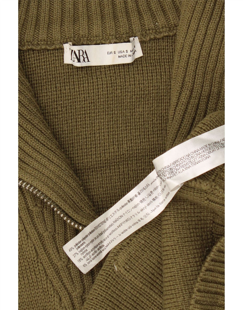 ZARA Womens Zip Roll Neck Jumper Sweater UK 10 Small Green Polyester