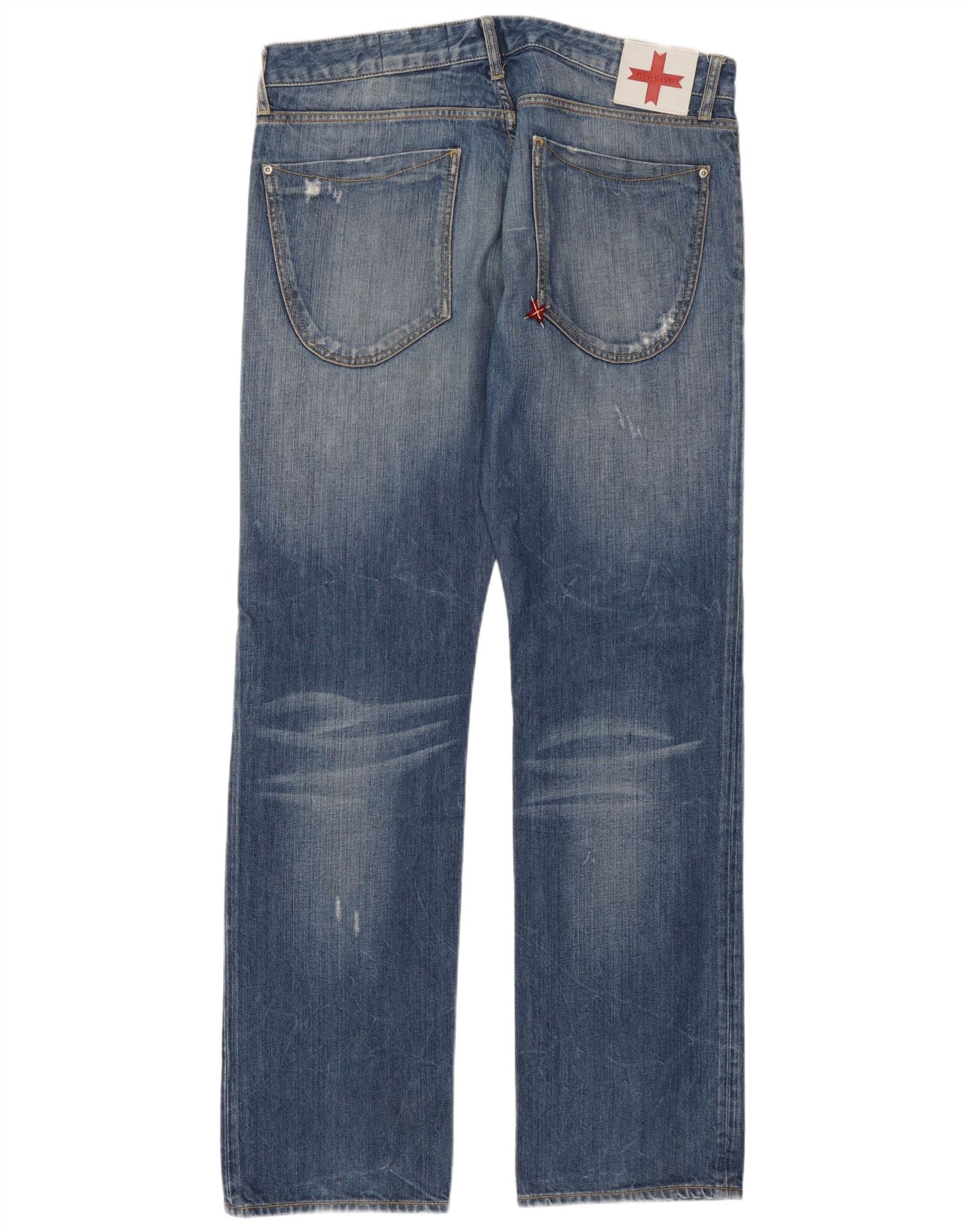 Zu Elements Mens Distressed Straight Jeans W36 L35 Blue Cotton