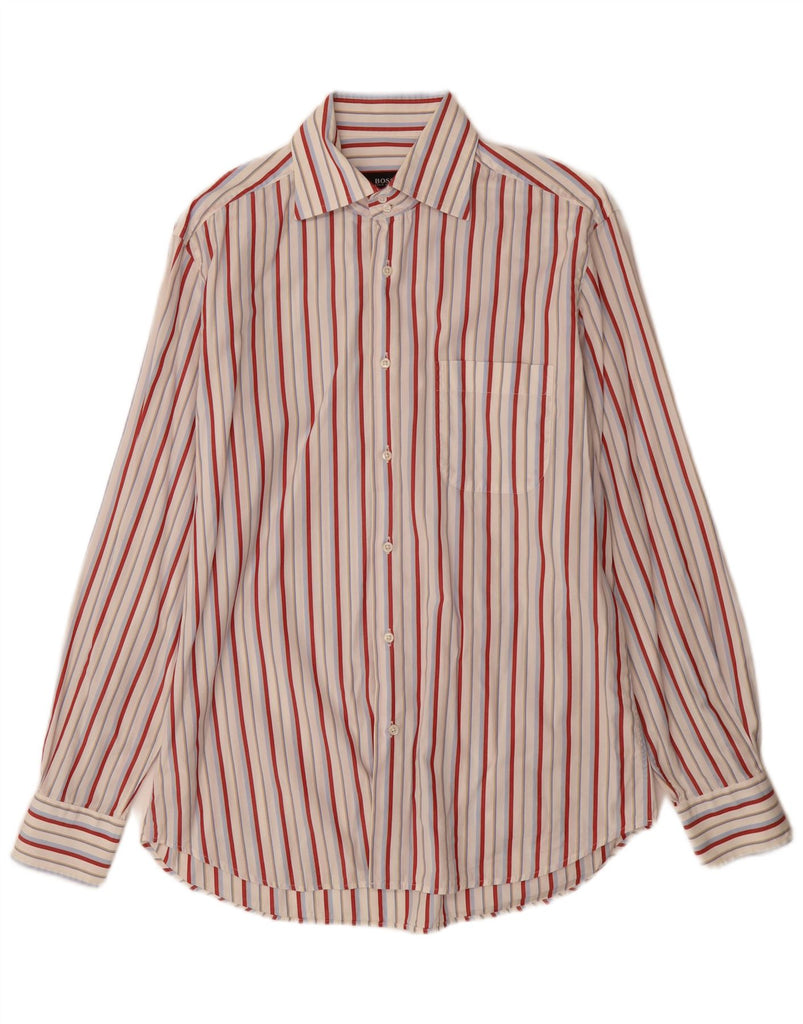 TED BAKER Mens Shirt Size 16.5 XL Navy Blue Striped Cotton Vintage Ted Baker and Second-Hand Ted Baker from Messina Hembry