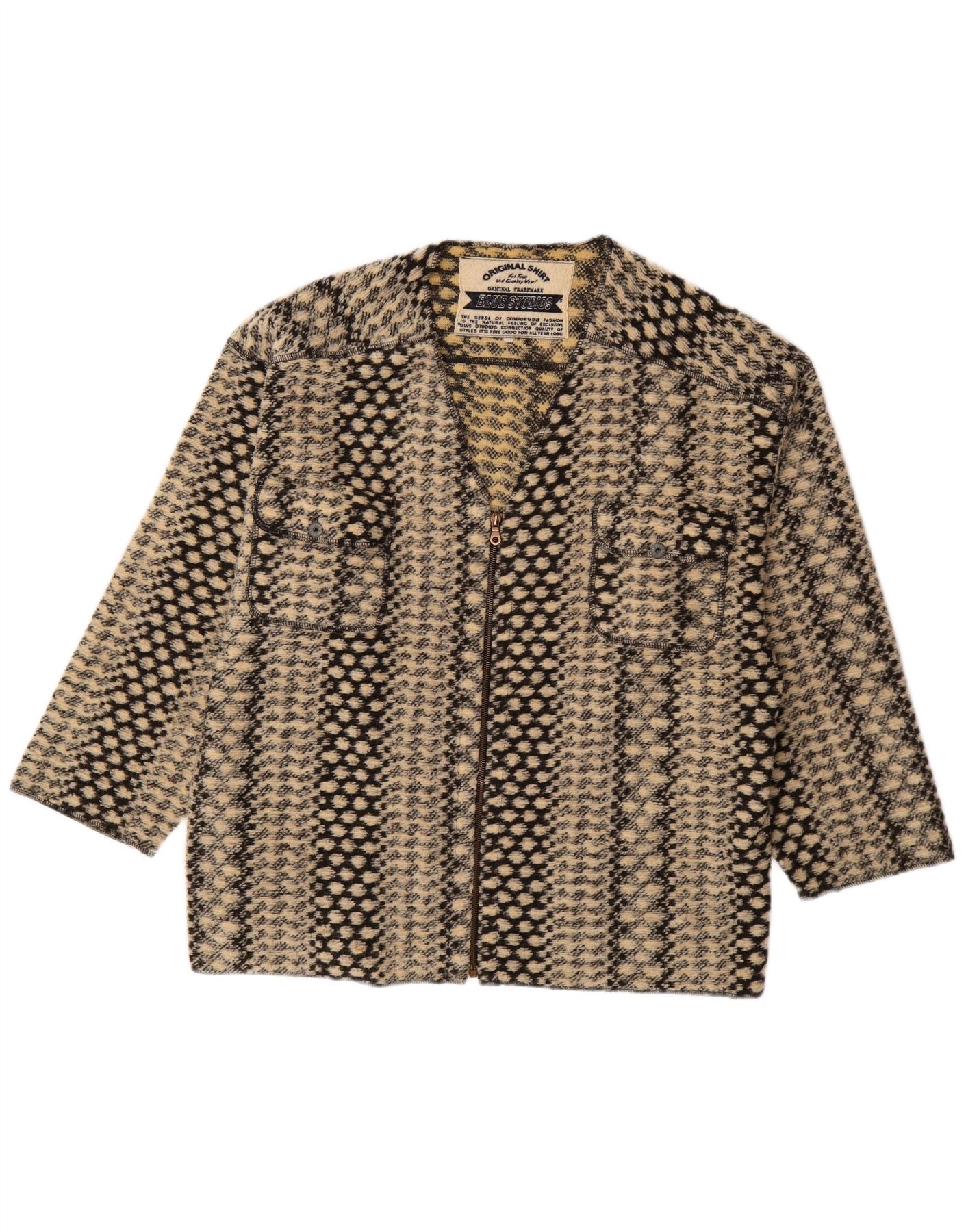 VINTAGE Womens Shirt Blouse UK 13/14 Medium Yellow Geometric Polyester Vintage Vintage and Second-Hand Vintage from Messina Hembry